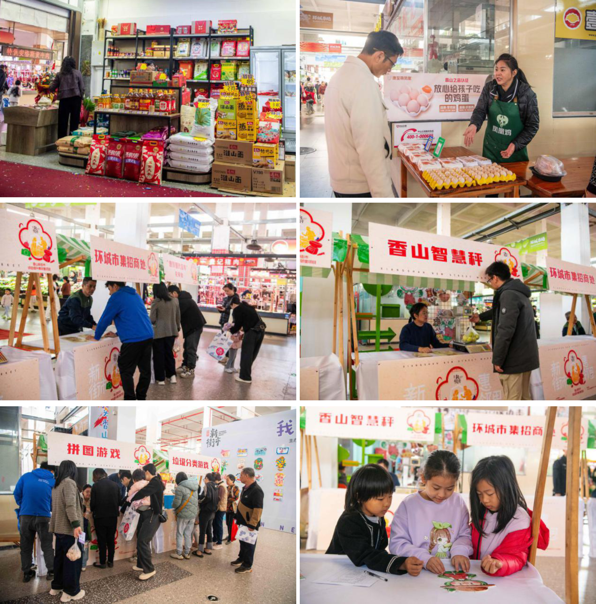 现场还举行了“邻里服务中心惠邻里”集市活动,有石岐乳鸽、黄圃腊味、沙栏鸡等“香山之品”的展销活动,也有香山智慧秤“诚信计量”的体验及推广,还有环城市场场长在线招商,当然也少不了生动有趣的摊位游戏。