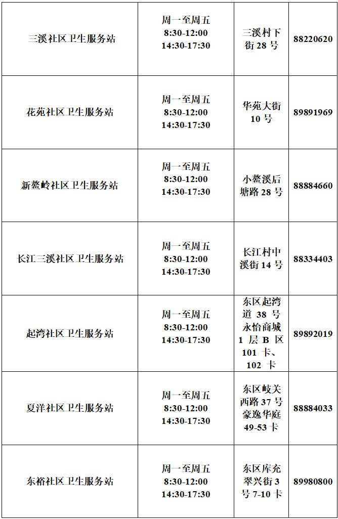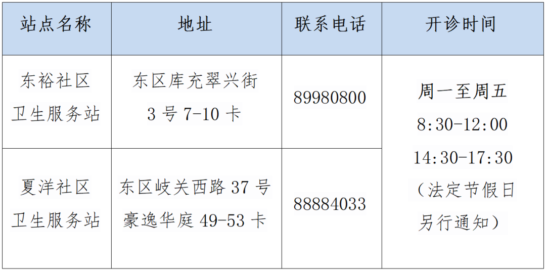 东裕社区卫生服务站、夏洋社区卫生服务站