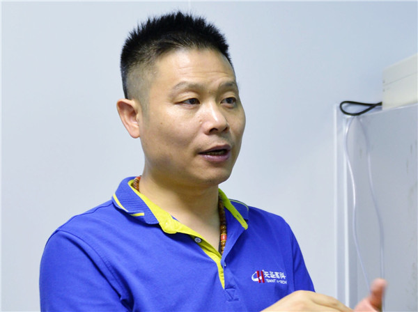 蒋富裕今年48岁,安徽人,是古镇首个挂牌新三板的公司广东天圣高科股份有限公司的董事长。