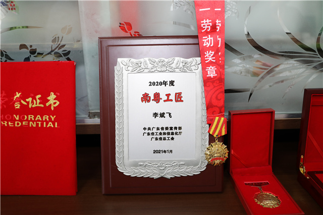 2021年1月30日,凭借精湛技艺和一颗医者仁心,今年46岁的李斌飞从千万名劳动者脱颖而出,当选由中共广东省委宣传部、省工业和信息化厅、省总工会主办的寻找匠心之美——2020年“南粤工匠”称号。