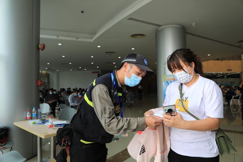 12月15日上午,灯都古镇会议展览中心入口处,前来接种新冠疫苗的群众正在有序排队。“请出示您的行程码和健康码。”身姿笔挺、口吻谦和的魏荣发示意群众扫码墙上的二维码以供查验。“这是我近期以来参加的志愿活动之一,主要负责维护现场秩序与安保工作……”话说到一半,肩上的对讲机里传来队友求助,魏荣发赶忙辗转至另一个哨岗。