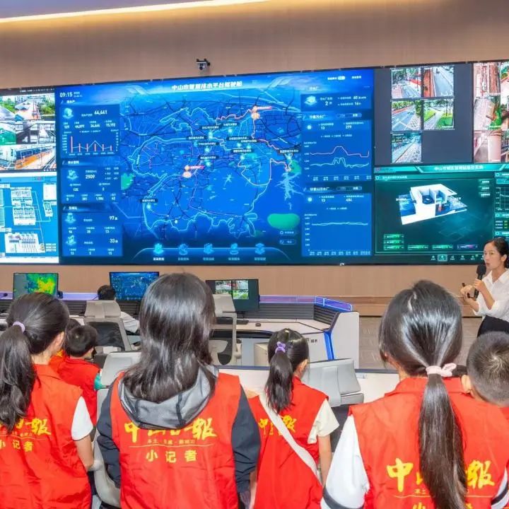 首站,小记者们走进智慧排水平台的“大脑”——指挥中心。抬头便是一面巨幅LED屏:排水管网、污水处理厂、河涌水质、泵闸站调度等数据像星河一样实时流转。孩子们围在屏幕前,看厂区监控把污水变清流的每一步——“原来脏水是这样回家的!”