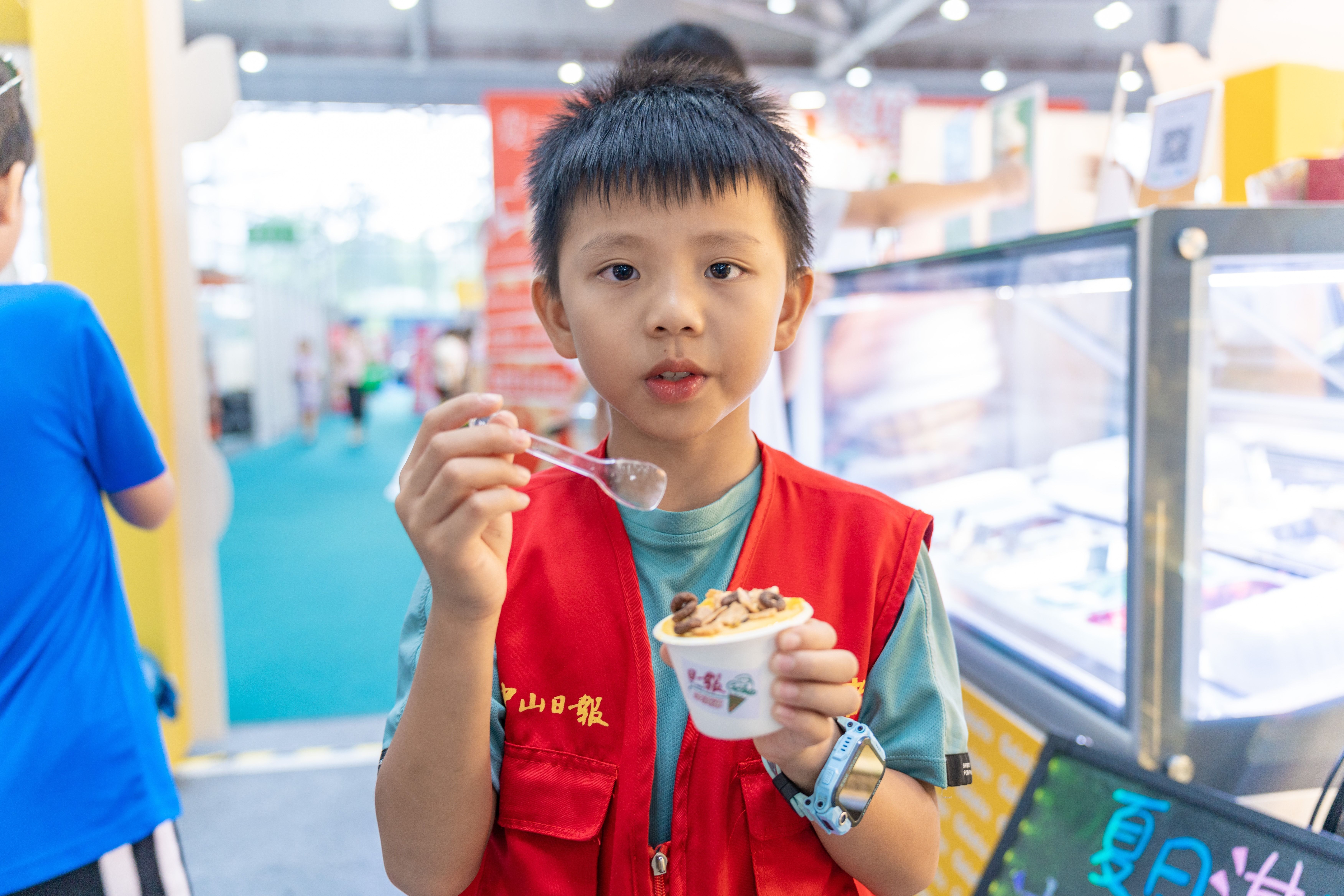 “书展一日星荐官”在现场品尝“日报冰淇淋”。彭磊铿 摄以独特视角诠释阅读之美