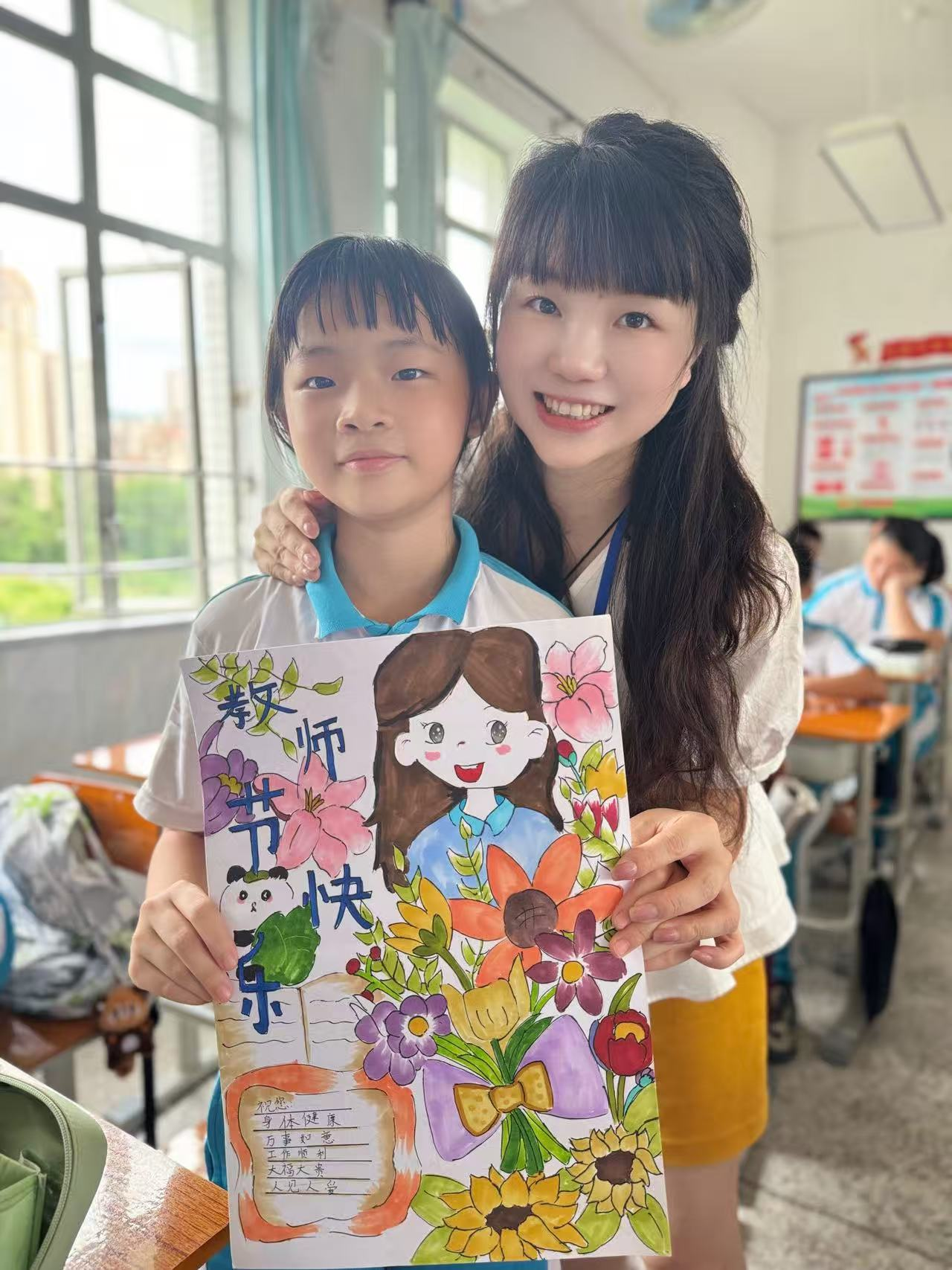 表彰结束后,学生代表们将亲手制作的钻石画送到老师手中,每一幅作品都承载着对师恩的诚挚感谢;学校工会则准备了寓意美好的果篮,祝愿老师们平安幸福、桃李满天下;孩子们纷纷走到老师面前,用纯真的话语表达心意:“老师,祝您节日快乐,您辛苦了!”简单的话语、瞬间温暖了每位老师的心。
