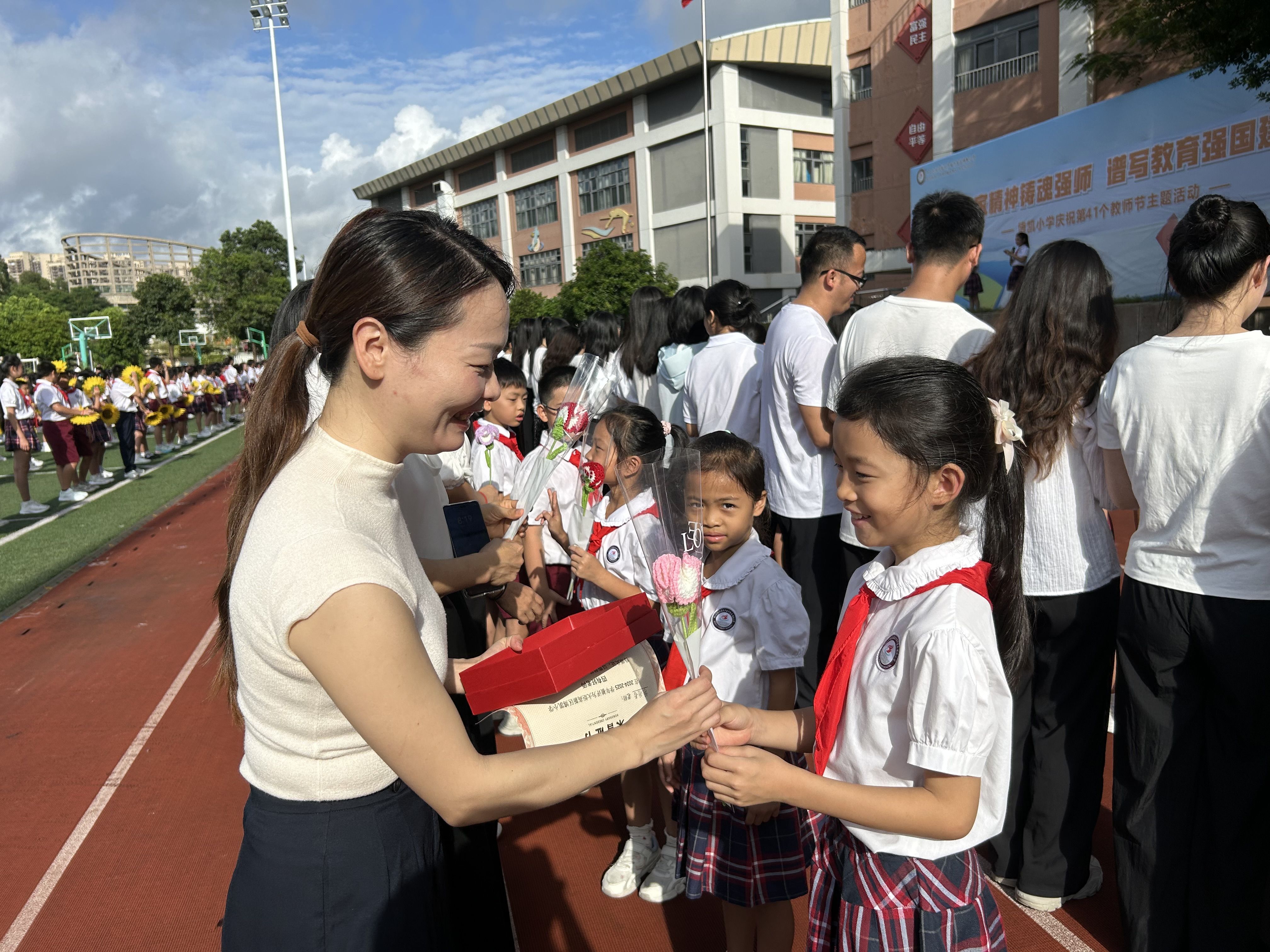 420幅童画匠心打造线上画展、温馨表彰交织着歌声祝福、以教育家精神厚植师魂……为庆祝第41个教师节,中山多所小学精心策划多元特色活动,向辛勤耕耘在教育一线的老师们致以最诚挚的敬意,送上了满含心意的节日礼赞。
