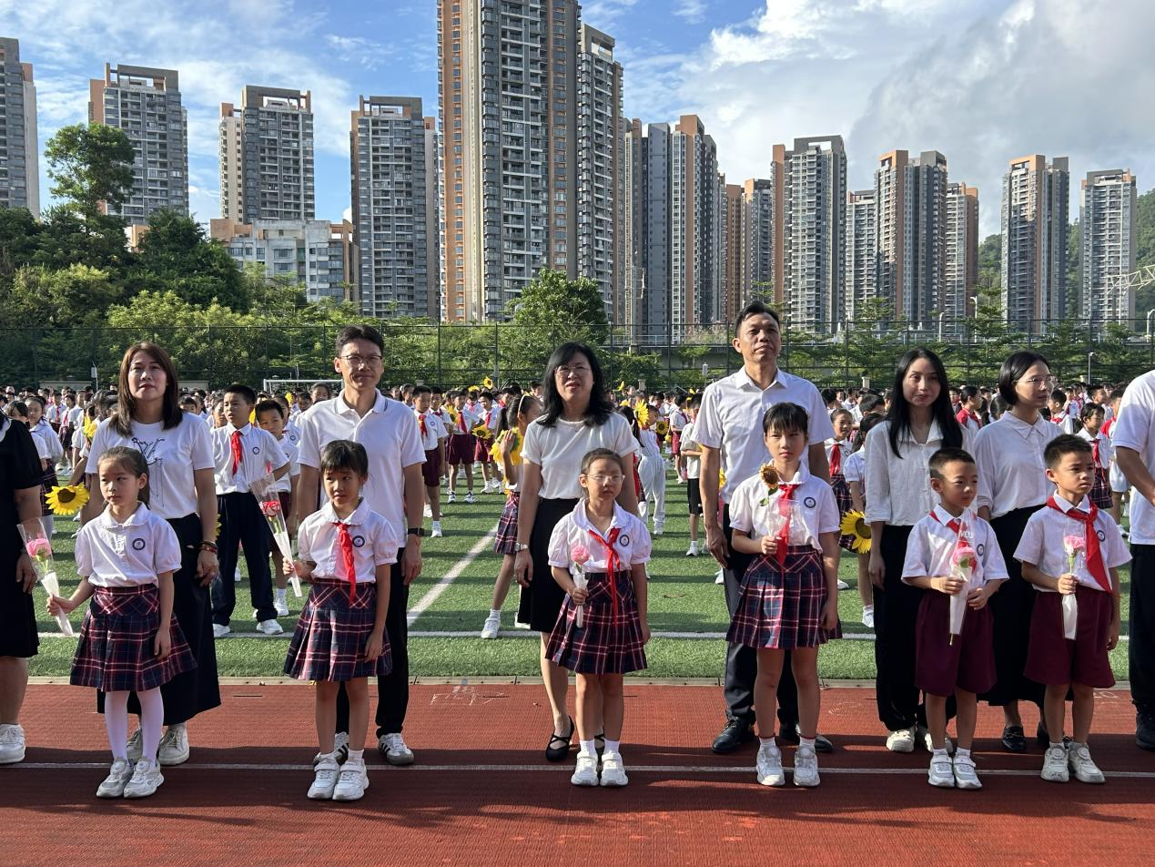 上午的校园里,《每当我走过老师的窗前》的熟悉旋律缓缓响起。党员教师代表率先牵手学生踏上红毯,胸前鲜艳的党徽与孩子们的红领巾交相辉映,每一步都传递着“党建领航、立德树人”的教育温度。随后,校歌《博鹰展翅飞》奏响,少先队员们以标准的队礼,向辛勤付出的教师们致敬。