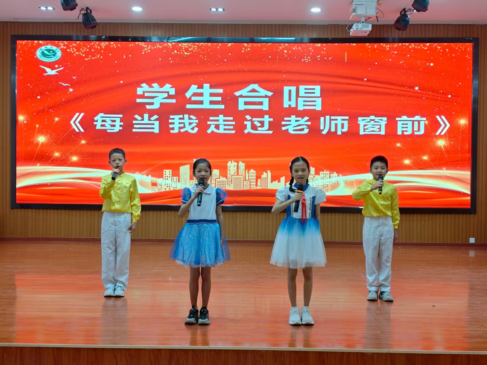 当天上午,全体教师、学生代表与家长代表欢聚一堂,共同参与这场充满感恩的主题庆祝活动。活动在师生合唱的《每当我走过老师窗前》中拉开帷幕,清澈嘹亮的歌声里满含对老师的感恩之情,老师们的脸上也随之洋溢出幸福的笑容。随后,校长上台致辞,向全体教师送上节日的亲切问候。她以“温暖有光的教育力量”为主题,深情回顾了老师们日常工作中微笑迎接学生、耐心倾听心声、用心启迪智慧的一幕幕温暖的工作细节。