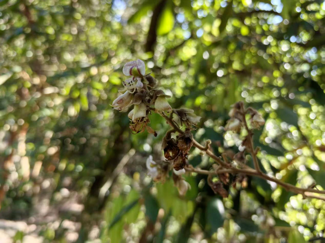 本次发现的胀荚红豆种群有几十株,沿着溪边生长,长势良好,能顺利开花结实,种群较为健康稳定。