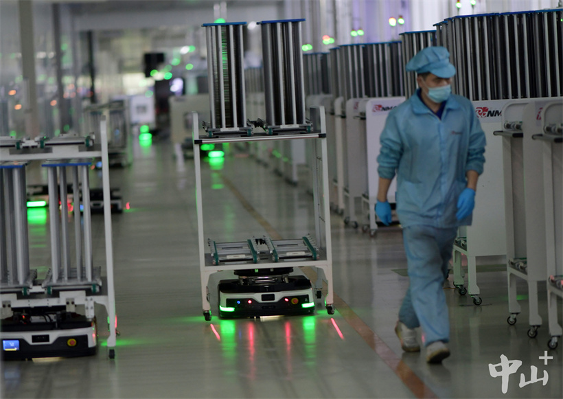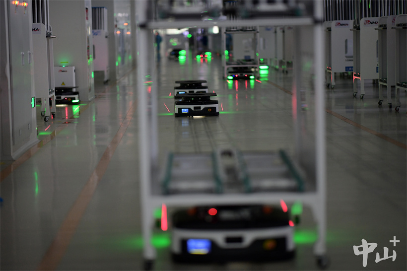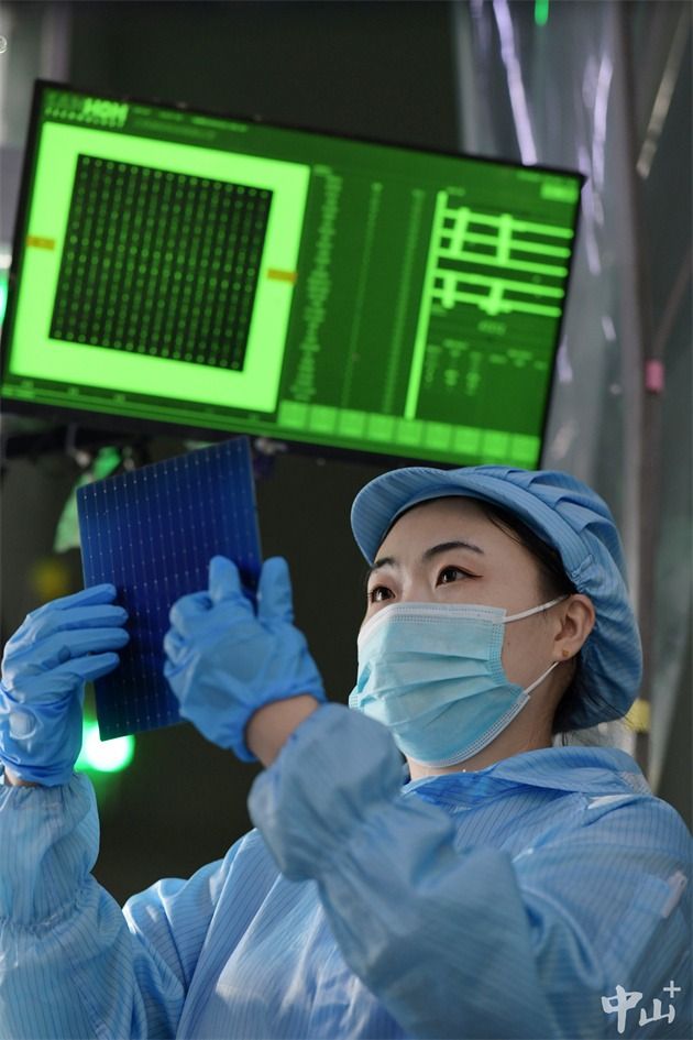 ▲10月12日,润马光能集团熄灯车间里机器人忙碌穿梭在各种生产线之间运输产品(下图),工作人员认真检查刚下线的太阳能单晶硅质量(上图)。这是一家致力于太阳能单晶硅P型/N型电池,光伏组件的研发、生产和销售,集光伏电站投资、建设、运营于一体的国家级高新技术企业。