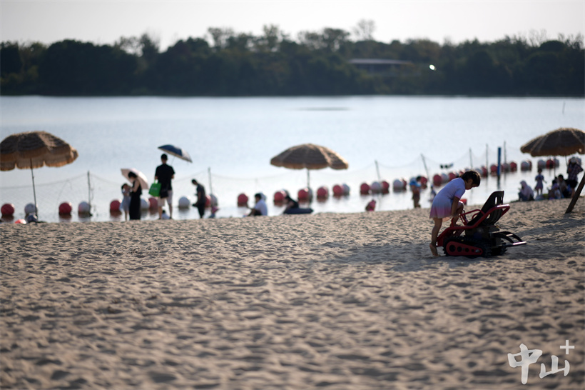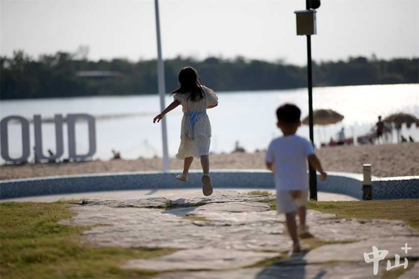 ▲10月12日,游客在云水汀公园游玩戏水,这个位于金漪湖科创策源地内的生态滨水区域,占地118.1公顷,融合了“云边、水边、林边”的三维生态体系。