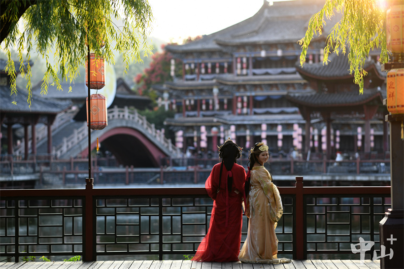 ▲10月13日,身着古装的游客在东阳横店影视城清明上河图景区游玩,景区的演员积极主动与游客互动,让游客感受一次当演员的“瘾”。横店影视城拥有百余座甲级(电影级)、乙级(电视级)摄影棚,影视拍摄场景数量超2000个。平均接待15个以上剧组,最多同时有50个剧组在影视城内同时拍摄。