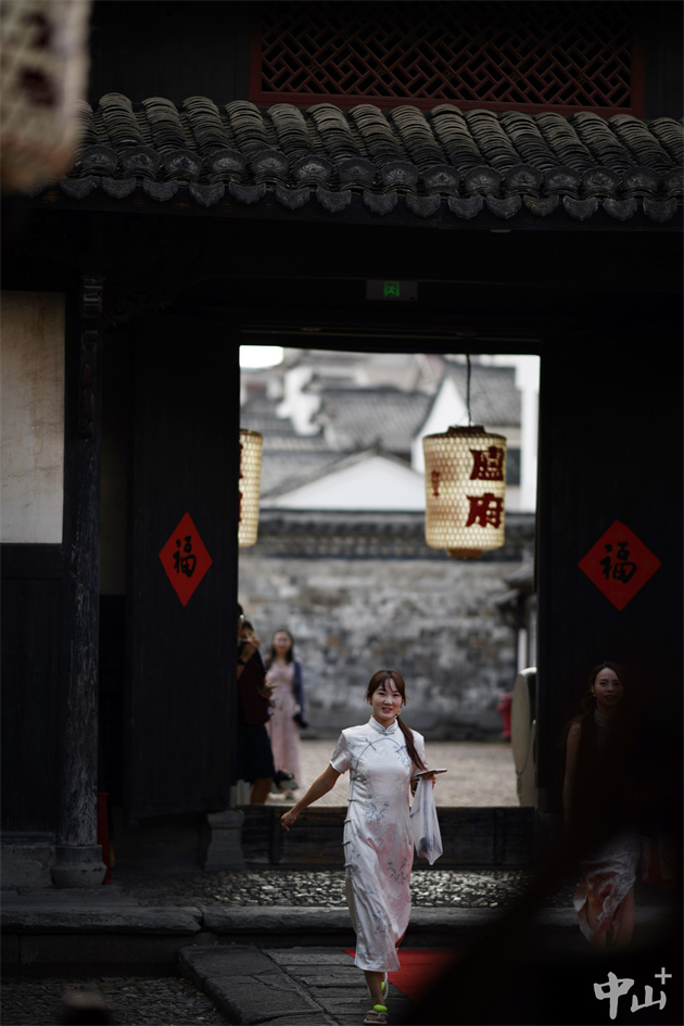 ▲10月13日,游客在东阳卢宅里参观和聆听东阳道情。这个涵盖了明清古建筑群、卢宅老街、非遗街区、商业街的建筑群有“民间故宫”之美称。卢宅建筑营造技艺作为婺州传统民居营造技艺之一,被列为第二批国家非物质文化遗产名录。非遗街区设有17个场馆,集聚优秀非遗项目30余项。卢宅老街集聚近50家木雕竹编与古建筑构件商户,是全国著名的仿古木雕与传统营造集散中心。