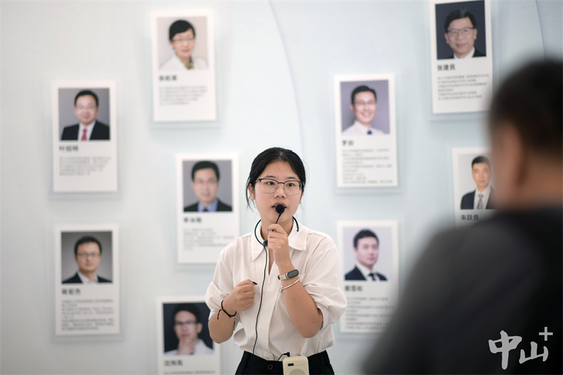▲10月12日,金漪湖科创园展出的无人驾驶小巴车(上图),工作人员给来宾介绍一家科研机构的专家阵容(下图)。金华市金东区通过生态修复,将曾经的“荒草地”蜕变为金漪湖科创策源地,聚集了多家研究院和高能级实验室,主要承担科创研发、成果转化、高端智造等功能,吸引高层次人才和新兴产业落地。