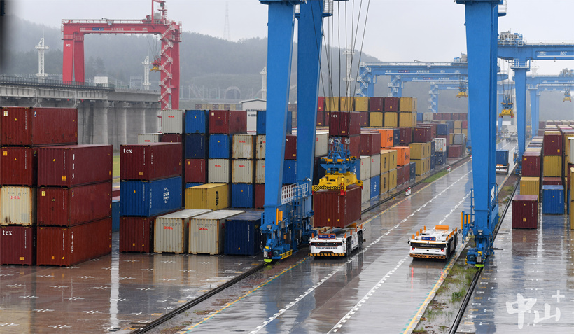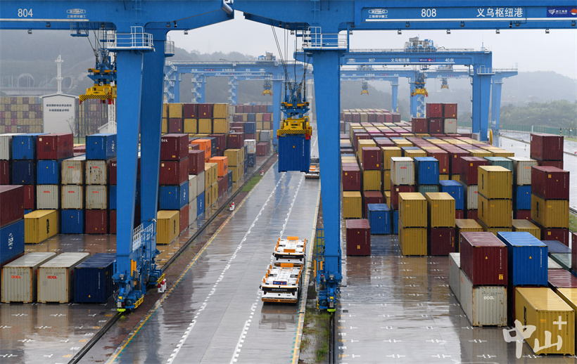 ▲10月14日,义乌(苏溪)国际枢纽港正在进行智能化无人装卸作业。该港位于义乌市苏溪镇,主要承载与宁波舟山港之间的进出口海铁联运业务,承接智慧港口、关务创新、港务延伸、航运服务等功能,是浙中西地区与宁波舟山港之间便捷的货物运输集疏运通道。