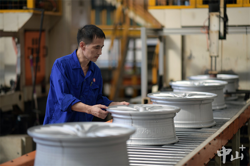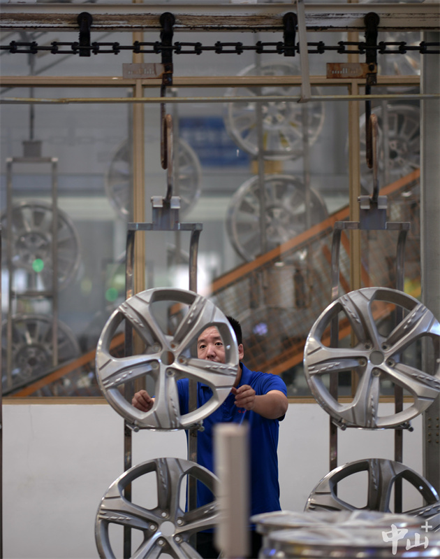 ▲10月12日,浙江今飞凯达轮毂股份有限公司生产线上,工人正在检查轮毂生产情况。该企业已形成以铝合金和汽车铝合金相关结构件双轮驱动、轻合金材料与智能装备多元支撑的产业格局。企业所在的金华新能源汽车小镇是浙江省集聚新能源汽车企业最多、产业配套最强的省级特色小镇。