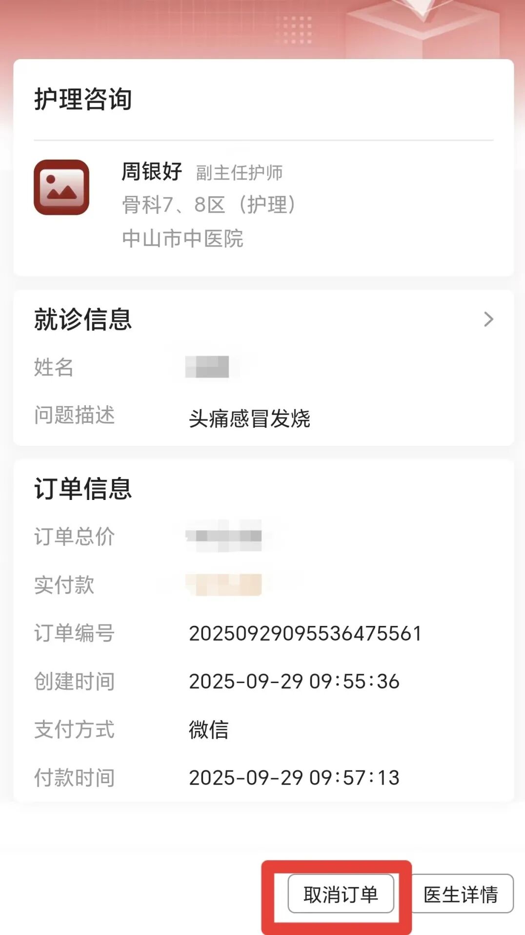 查看/取消:在【个人中心-我的服务】中操作。护士未接诊前可取消,费用将原路退回。