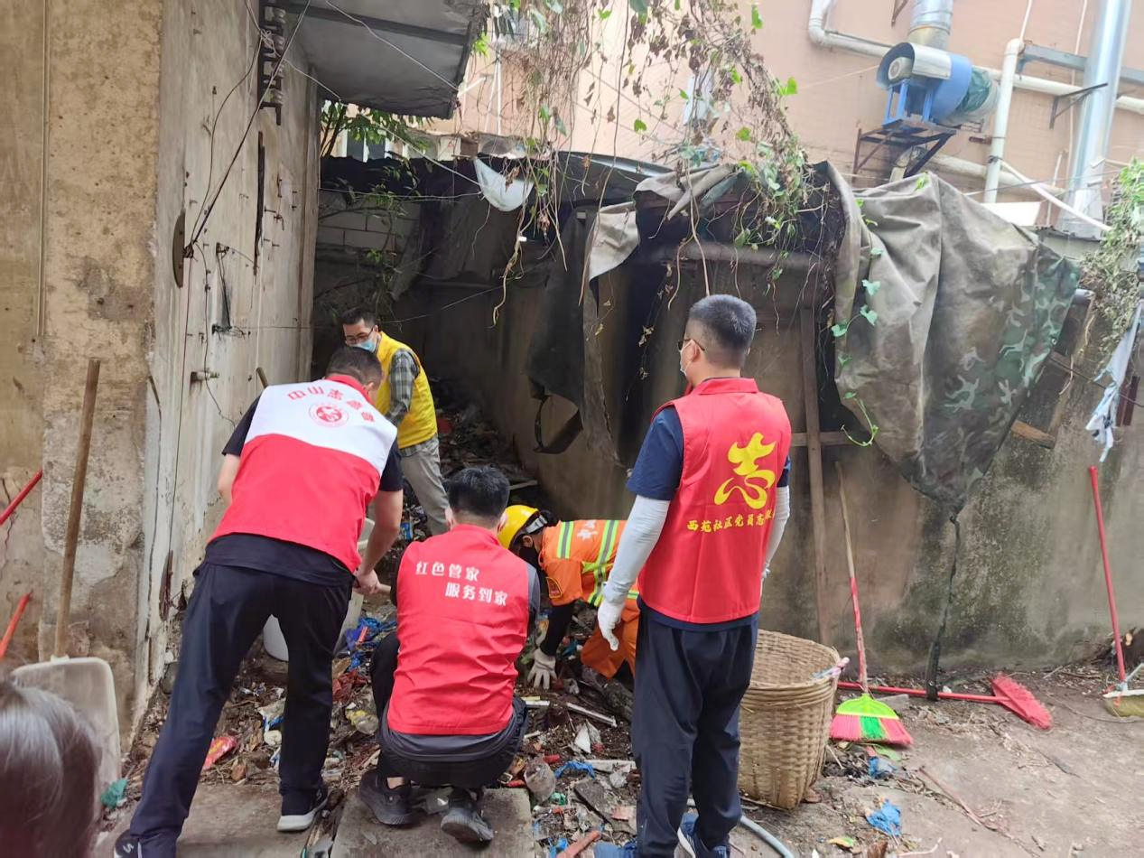 针对排查出的卫生黑点,西区街道下定决心“做减法”,向积存多年的垃圾杂物、蚊虫隐患“亮剑”。社区工作人员、“六联系”工作组、青年志愿者和环卫公司等纷纷加入,组成一支合力整治的“清洁小队”。