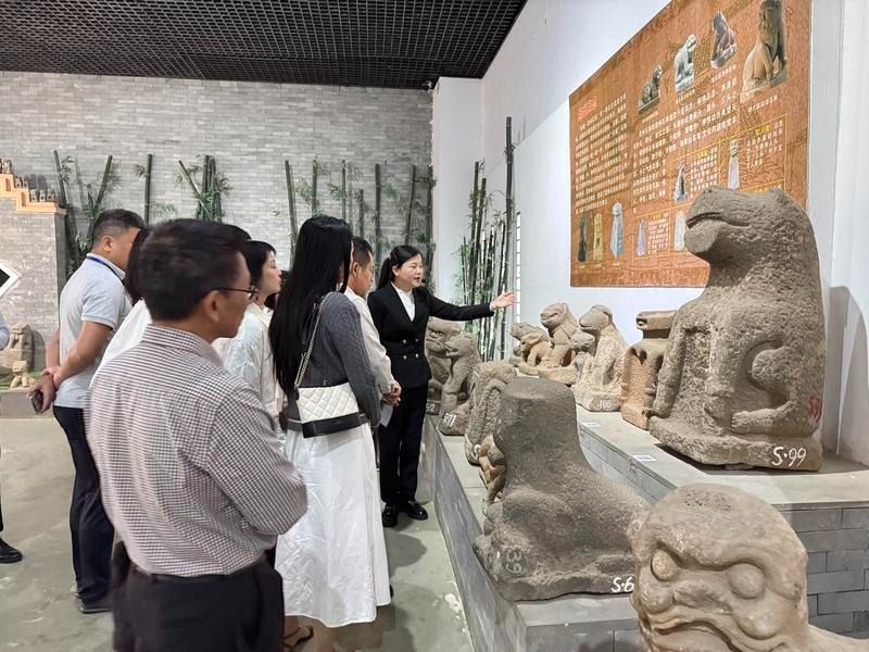 然而,文化的生命力在于传承与转化。在应葵雕刻艺术有限公司,雷州石狗非遗传承工作室主理人陈苗的讲述让大家看到了传承的力量。她指着展厅里一尊尊精美的石狗文创产品——迷你摆件、书签、印章、钥匙扣说:“我们不仅要保护石狗文化,更要让它走进现代生活。”这正是“百千万工程”所倡导的“活化利用”精髓。陈苗团队正通过新媒体平台,将石狗故事“动漫化”“IP化”,让古老的图腾与年轻人的审美对话。