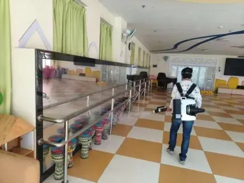 科学消杀:44所学校均组建了校园消杀队,配备专业消杀器械及药剂,由街道专业消杀队定期对其进行培训。每周开展1-2次的重点区域专业消杀,配置和加设550余盏高效灭蚊灯,构建“动态消杀+静态防控”双重屏障,实现了消杀无死角。