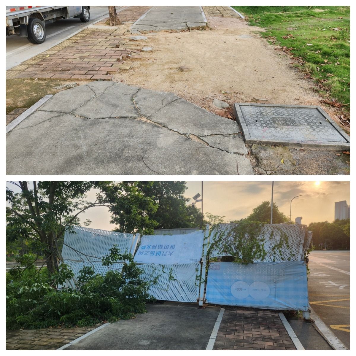 市住建局代建办:关于人行步道受损问题我单位已要求施工单位加快进场修复。且我单位已联合西区城建局、西区城管部门、施工单位到现场协调对集装箱等围蔽物清除工作,并已由西区城管部门向施工单位中建三局开具整改通知单,限期清除。