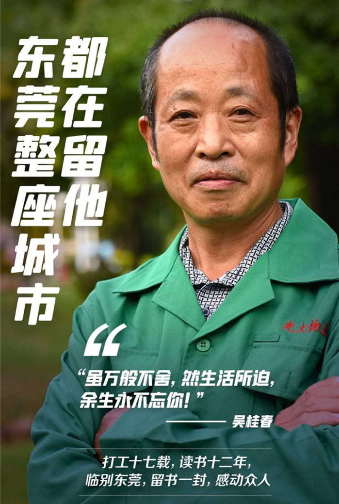 端午期间,湖北农民工吴桂春辞别东莞图书馆的留言火遍网络,感动众人,引起全国媒体广泛关注。人社部都专门为吴桂春发声,称要不间断地为“吴桂春们”找工作提供便利。最终,爱读书的吴桂春在东莞图书馆不远的地方顺利找到新工作。