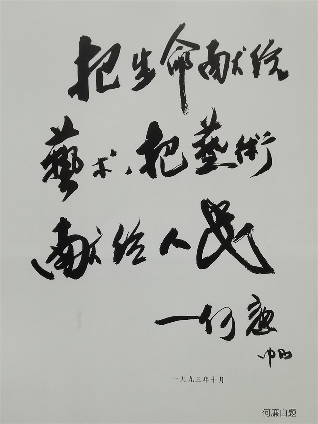 “把生命献给艺术,把艺术献给人民。” 在其自知即将离世的三个月前,何廉留下这句遗墨,它也是他终生最大的愿望。友人回忆,即便入院留医,他仍不忘工作,常常在病床前召开社务会议。