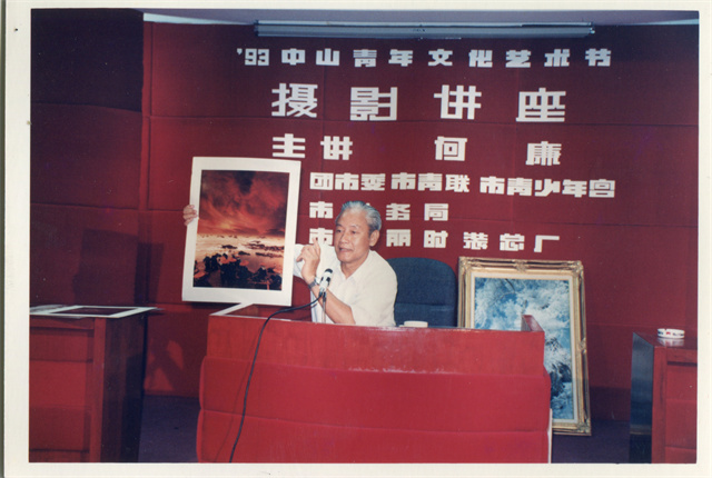 1993年,何廉在中山青年文化艺术节摄影讲座上分享摄影心得。