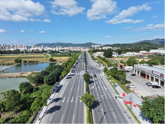 从广澳高速那洲收费站下高速进入三乡,映入眼帘的是三乡大道沿线的盎然绿意。宽阔的路面上,车辆川流不息。路旁的草地绿意葱葱、芳草如茵,沿线房屋外立面整洁美观。