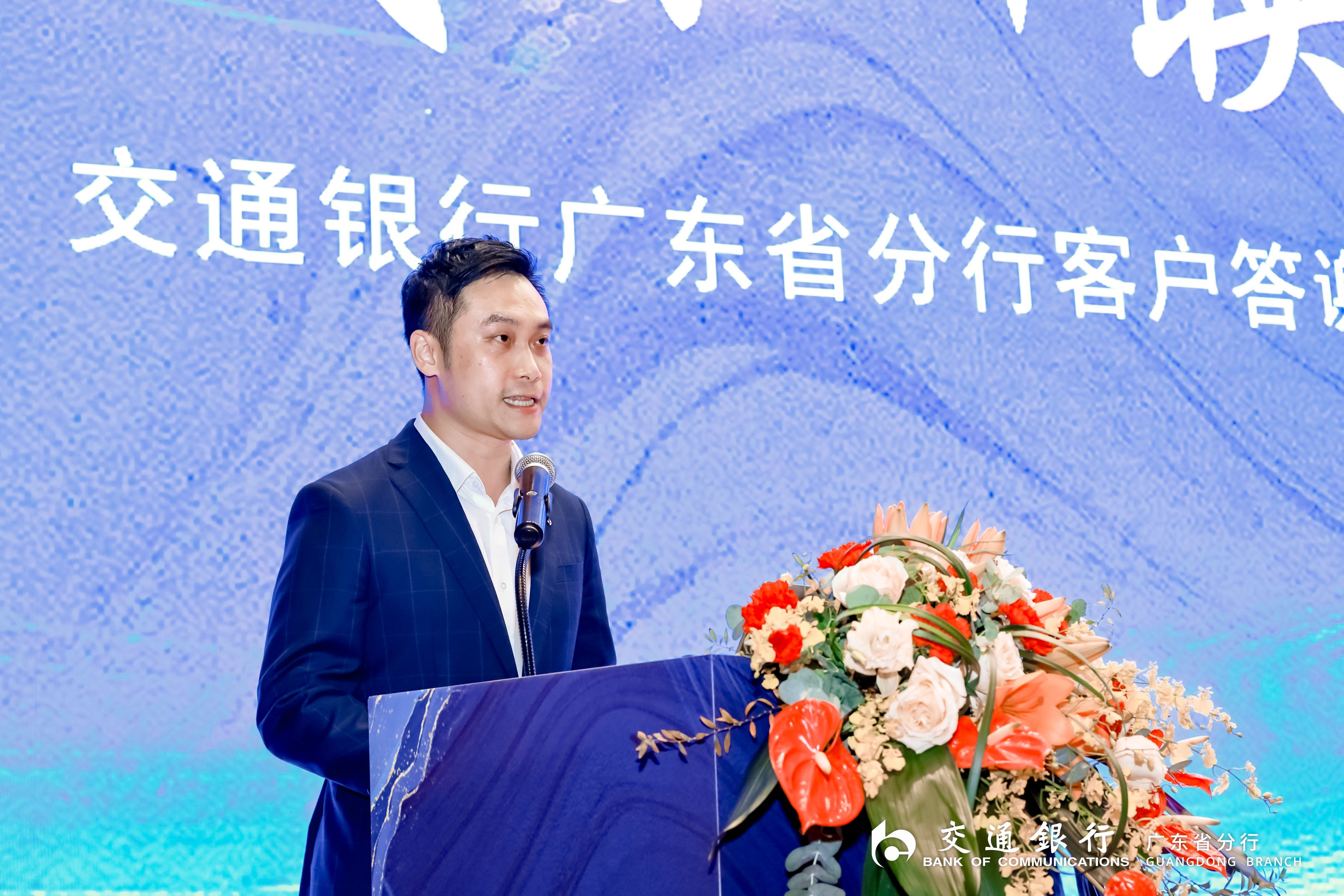 交通银行广东省分行公司部副总经理张驰致辞,感谢客户朋友对交行的支持与信赖,重点介绍了交行近年依托数字化转型,持续加大普惠民生的金融供给,逐步在绿色金融、薪酬代发、惠民贷款等领域,打造具有广东省各地特色的金融产品服务体系新路径。