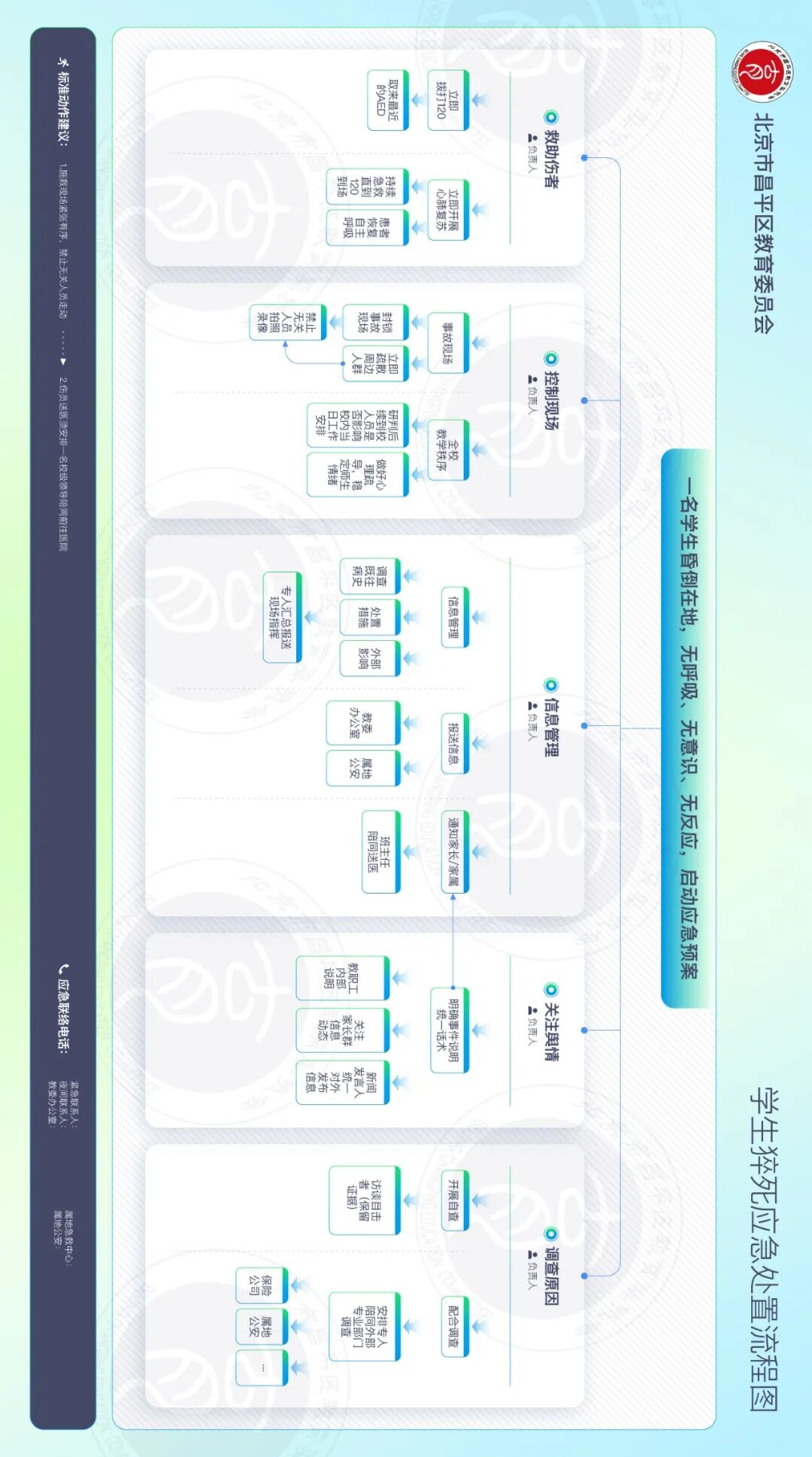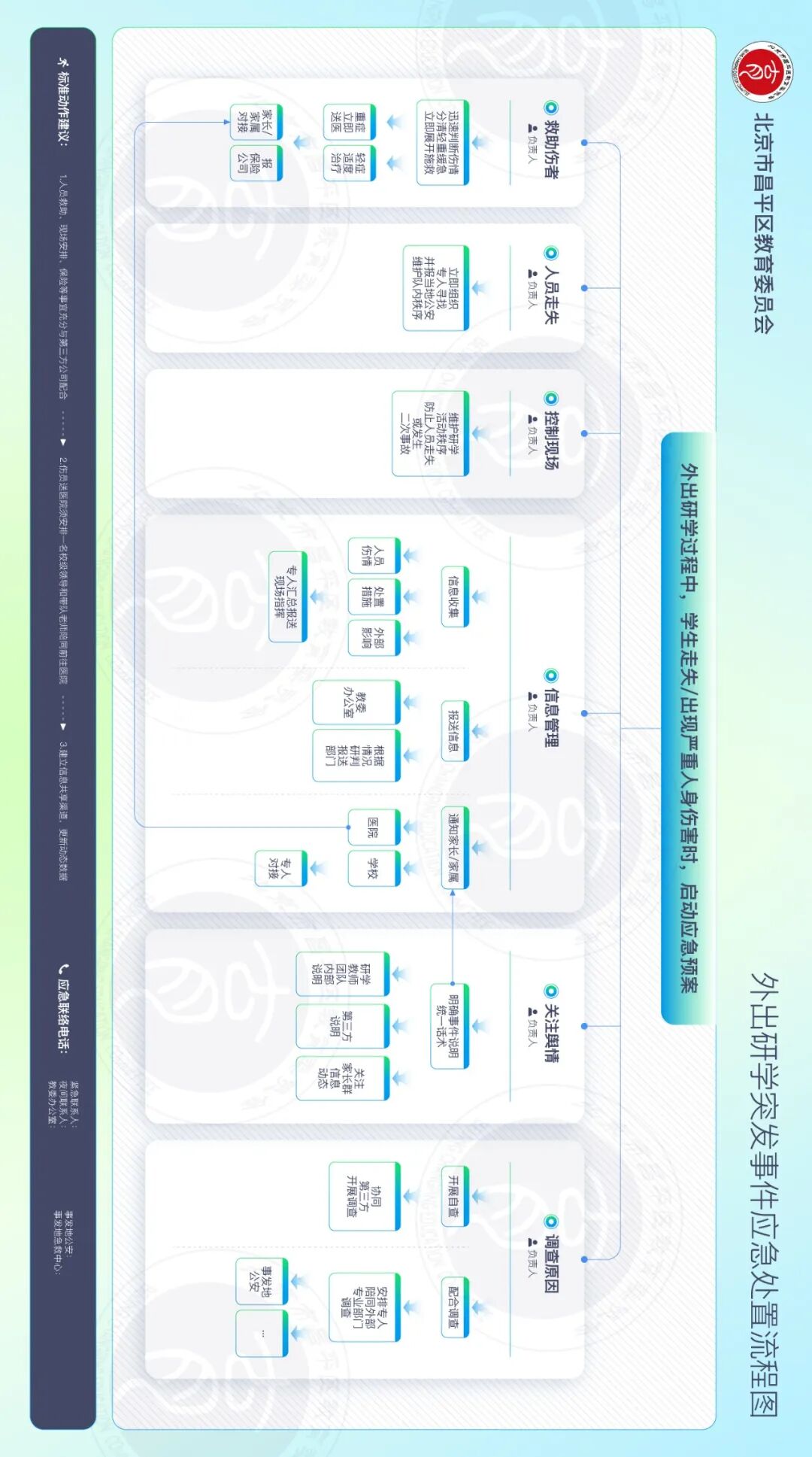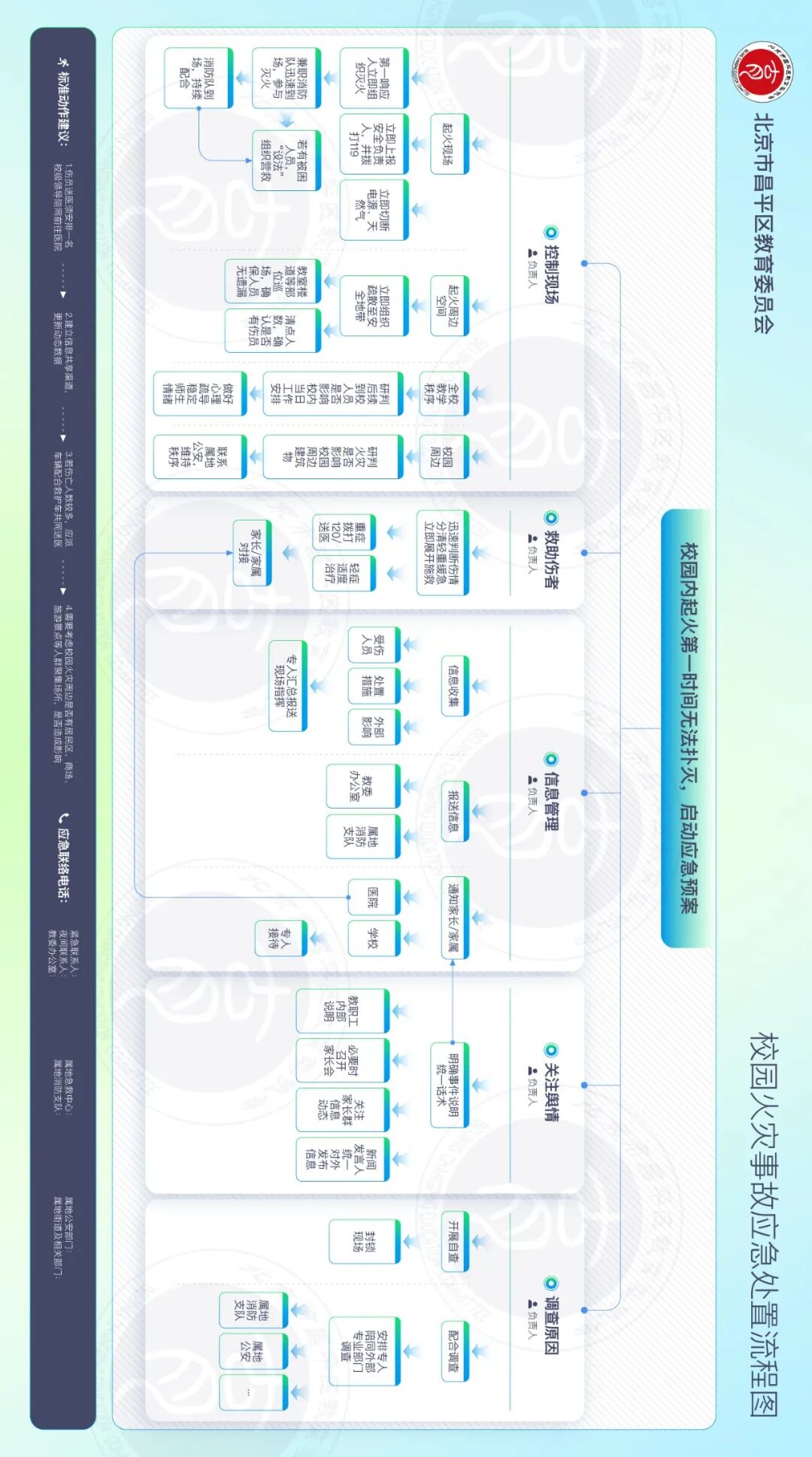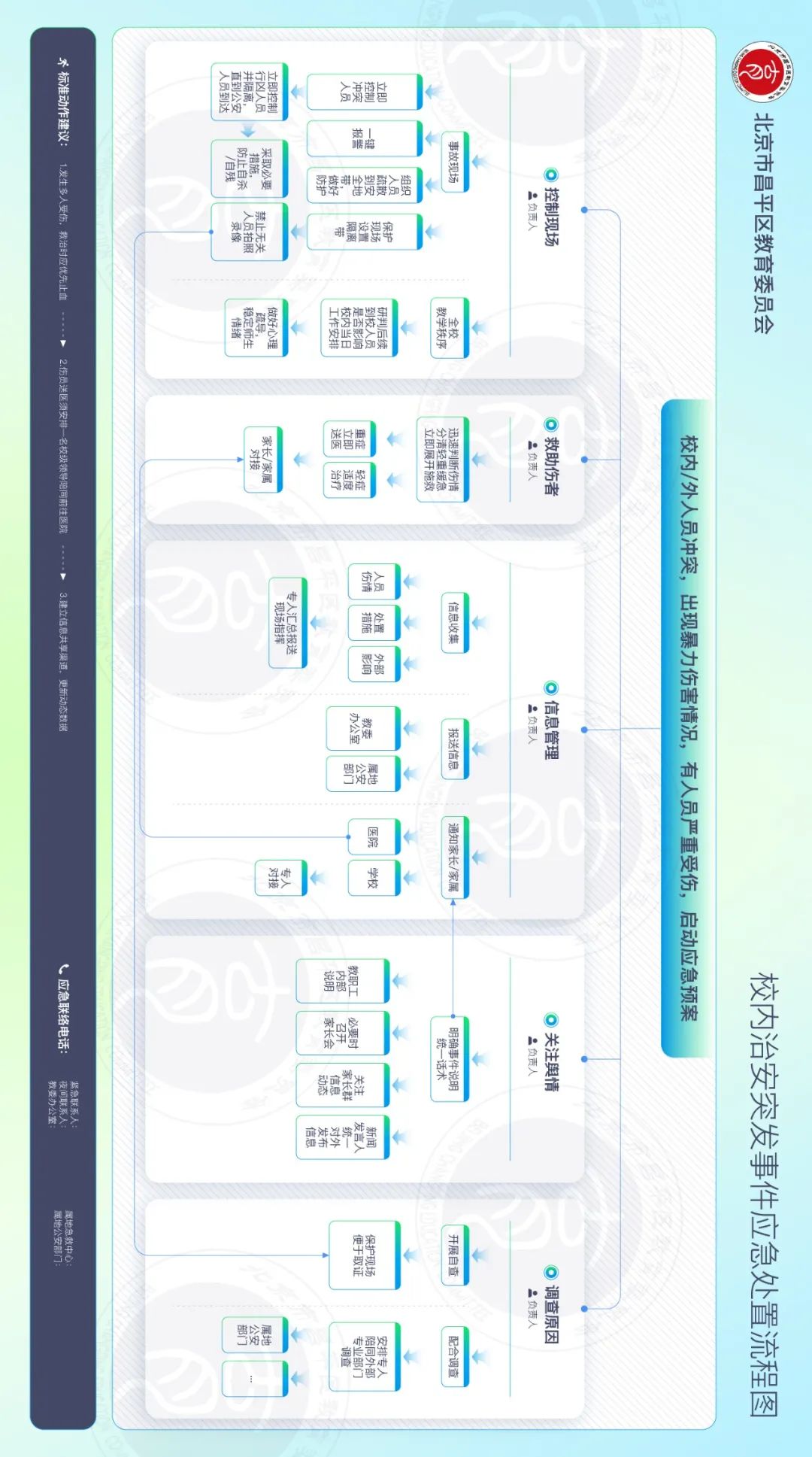 为进一步完善学校应急体系、提升突发状况应对能力,现梳理出校园火灾、食品安全、拥挤踩踏等8类常见事件的应急处置流程,供各学校参考,共同筑牢校园安全防线!