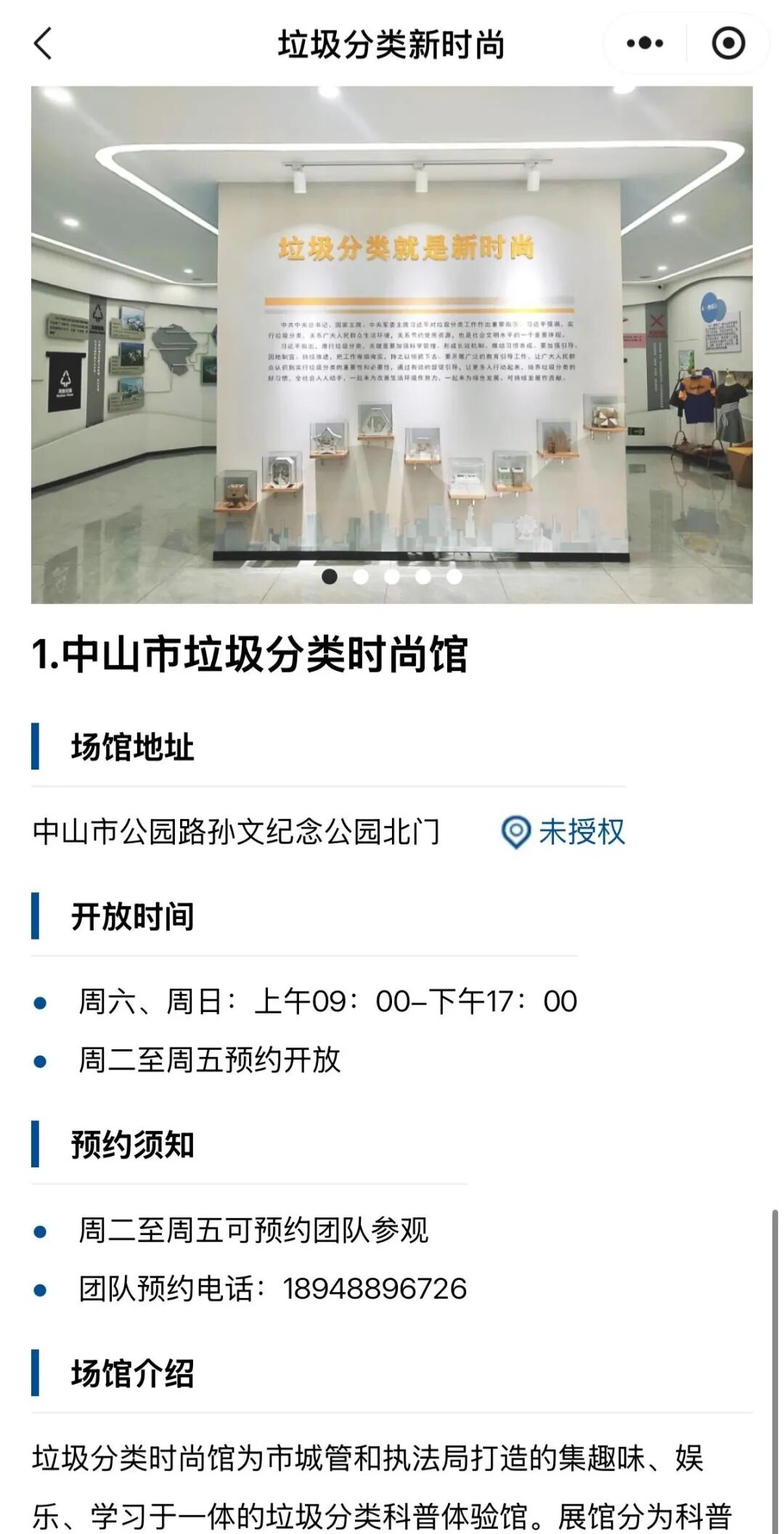 想带孩子进行一场有趣的环保教育?点开这里,全市垃圾分类科普宣教展馆的地图尽在掌握!点击任一展馆,就能看到它的简介、开放时间、预约方式和高清照片。轻松规划你的“环保之旅”,非常方便!