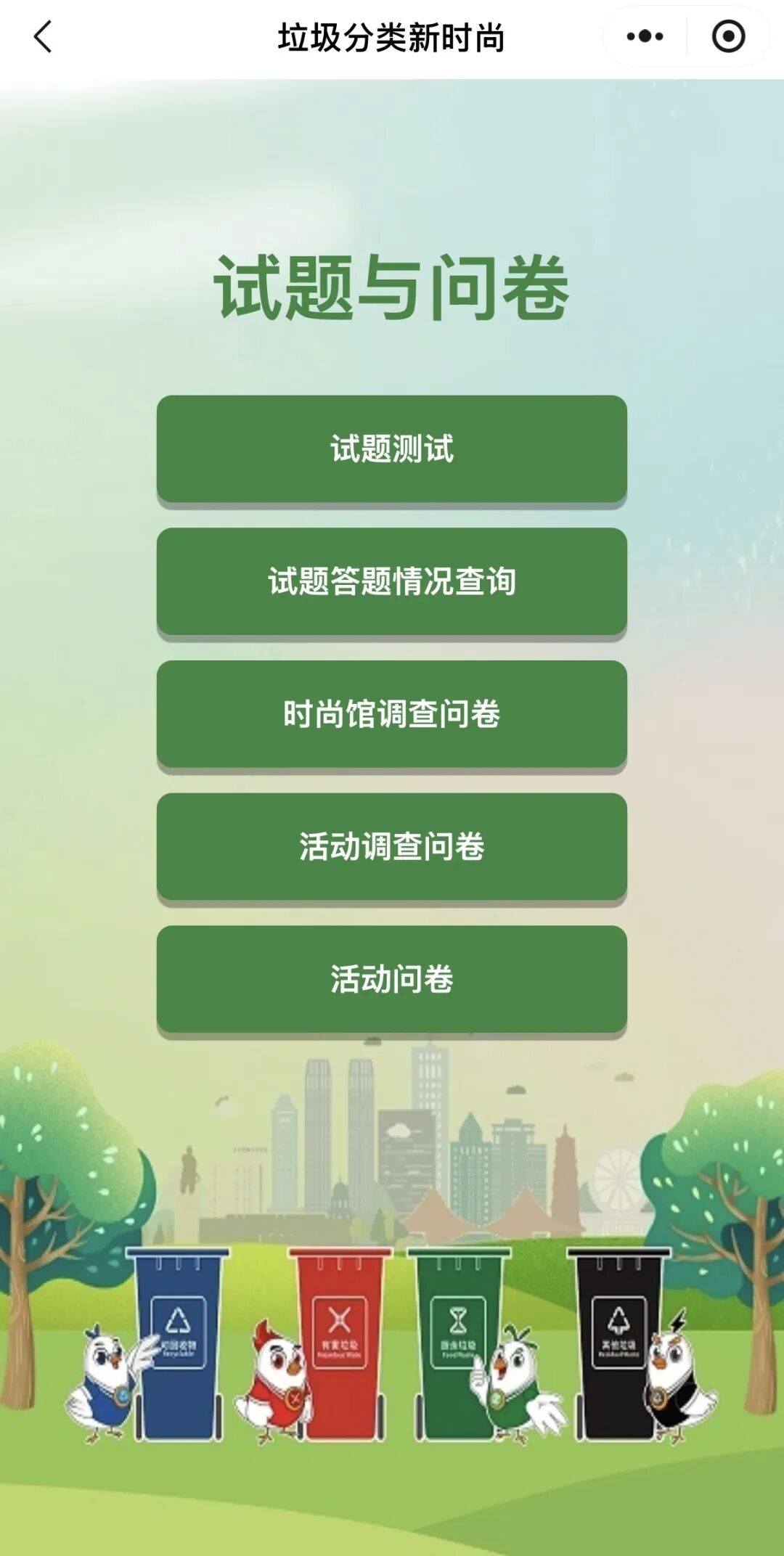 各单位、社区开展完垃圾分类培训后,效果如何?用这个小程序里的试题测试测一测就知道!同时,还设置了垃圾分类时尚馆参观反馈问卷,方便收集参观者的意见,助力中山垃圾分类工作越做越好。