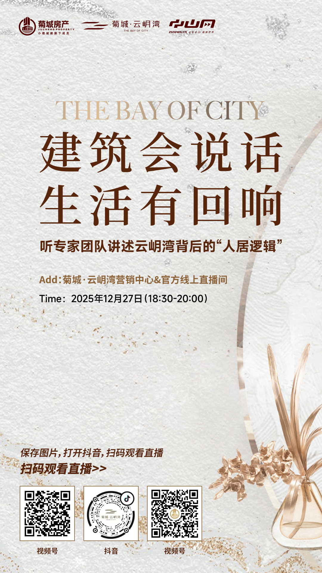 2025年12月27日(周六)18:30,一场关于 “人与空间、设计与生活” 的深度对话,即将在小榄菊城·云岄湾 温暖启幕。