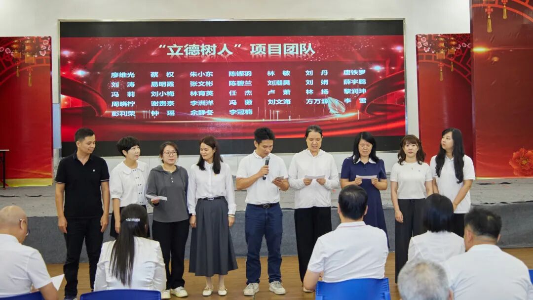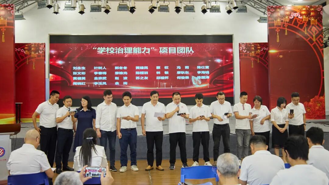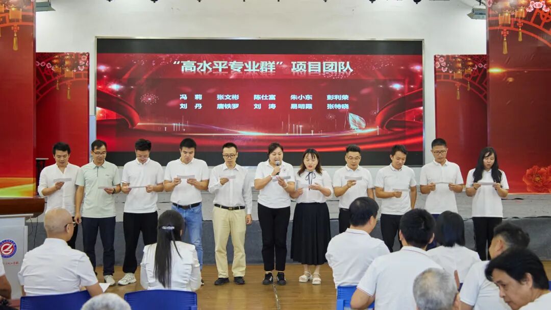 会上教务副主任陈仕富代表创建办做了“百舸争流千帆竞,勇立潮头敢为先”的主题报告,重点对验收工作内容做了四个方面的解读:一是研读两个文件,即《广东省教育厅关于开展2024年省高水平中职学校建设项目期满验收工作的通知》和《广东省高水平中职学校建设项目期满验收评价指标体系》;二是完成六种资料;三是工作推进的路径;四是明确工作时间节点。随后,十大任务、专业群及督导办各项目工作组负责老师分别带领自己的团队,面向全体教师宣誓高质量、严要求完成验收工作任务。