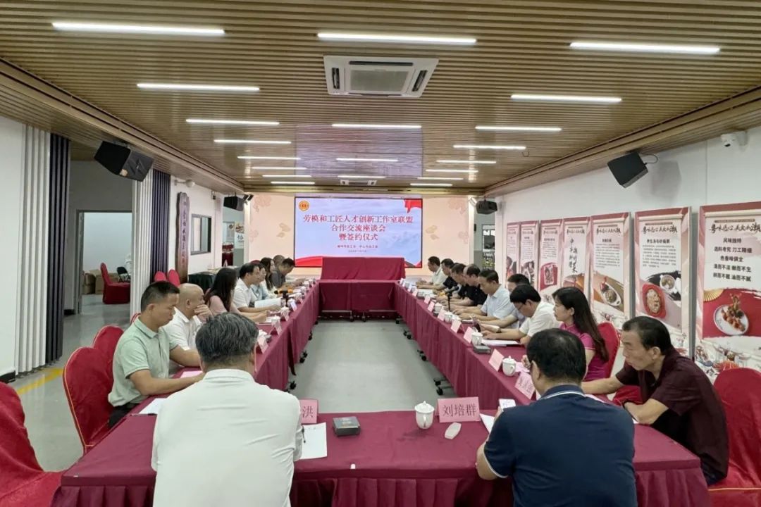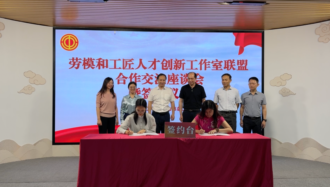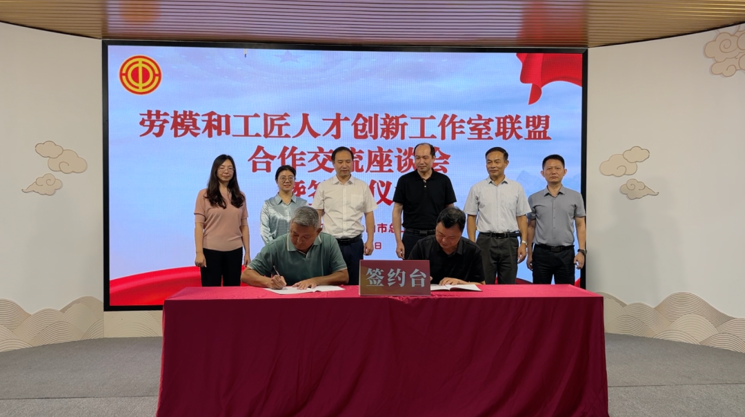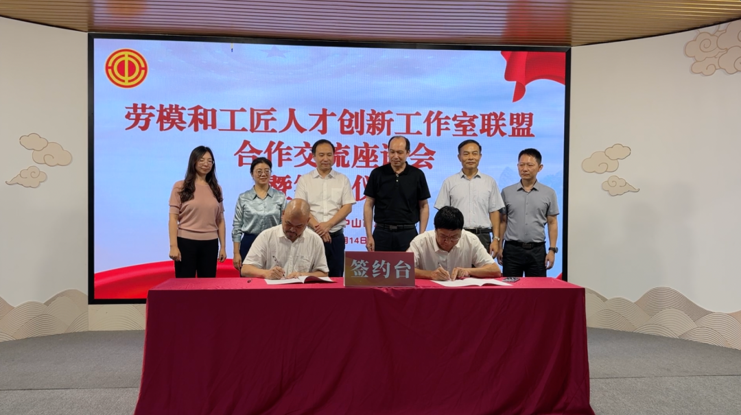 在中山、潮州两地总工会领导、劳模和工匠人才创新工作室领衔人、行业代表的共同见证下,两地总工会正式签署联盟合作协议。