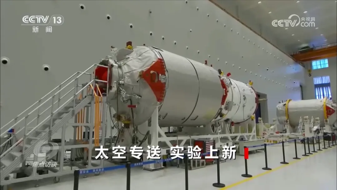 中国航天科技集团杨胜:“第一部分是航天员的驻留物资,还有空间站系统,一些平台的消耗品,一些维修的备件、备品。随着空间站建成运营,空间应用和各领域的实验样品和实验载荷的比重会越来越多。天舟八号做了一次改进,在临射段装载重量(大概)提升了100公斤,装载空间提升了260多升。可以提供不同的装载形式、提供供电、提供遥测、提供特殊的温度环境等。”