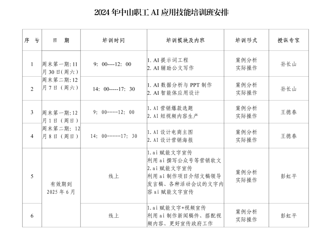 2024年11-12月,共开设2期周末专场培训,每期4天(含线上、线下各2天)。线上课程集中讲授,时间开班后另作通知。