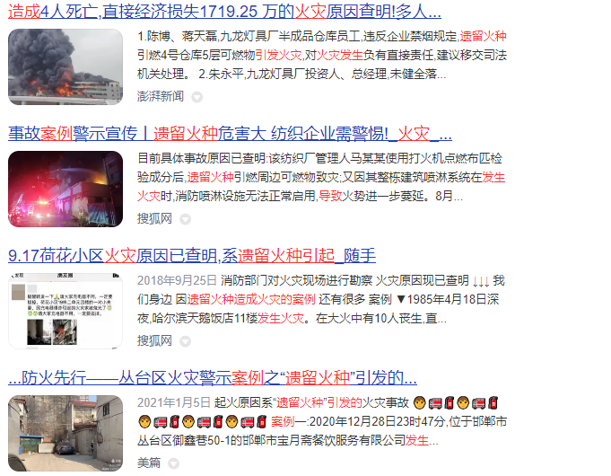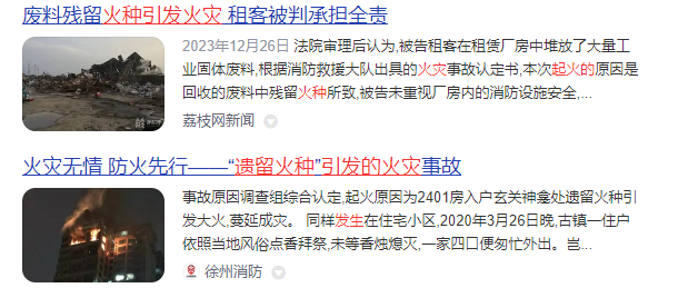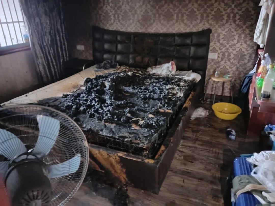 案例一:5月28日,金东区东孝街道,一租户家内的床铺突然起火。租户发现火情后,用灭火器迅速控制火势,幸好及时发现,未造成人员伤亡,经调查得知,系遗留火种引发火灾。