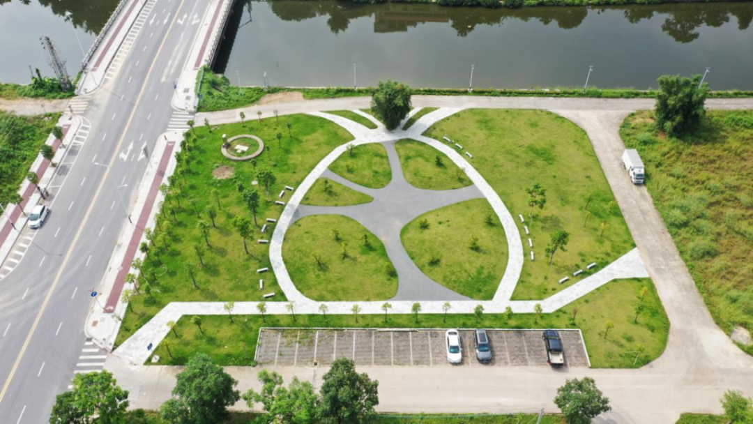 人才公园位于古宥涌旁,由本土企业和爱心人士定点捐赠大批绿化苗木,盘活原有的闲置荒地,新建菠萝造型慢行步道、停车位、路灯并设有“亲子+研学+小院”主题小公园,建成后已成为周边企业职工、居民游憩休闲的重要场所。