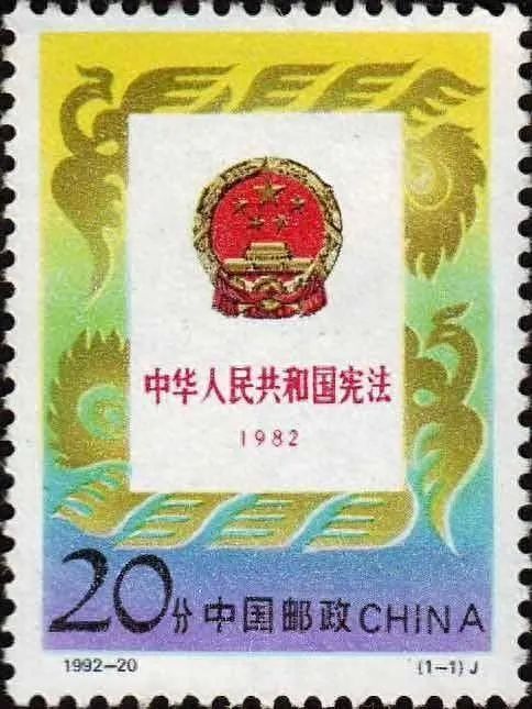 1992年12月4日,为纪念“八二宪法”颁行10周年,中国邮政发行《中华人民共和国宪法(1982-1992)》纪念邮票,一套1枚。