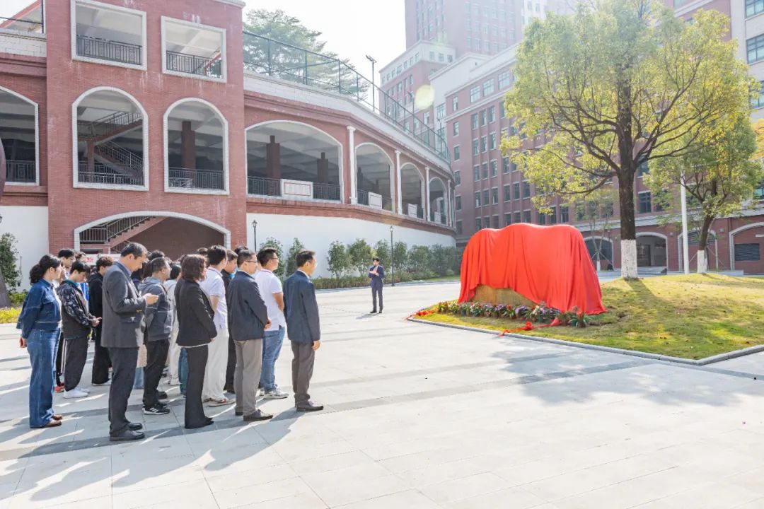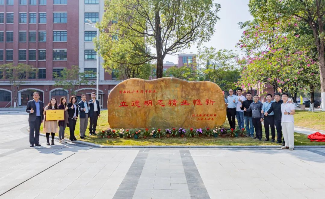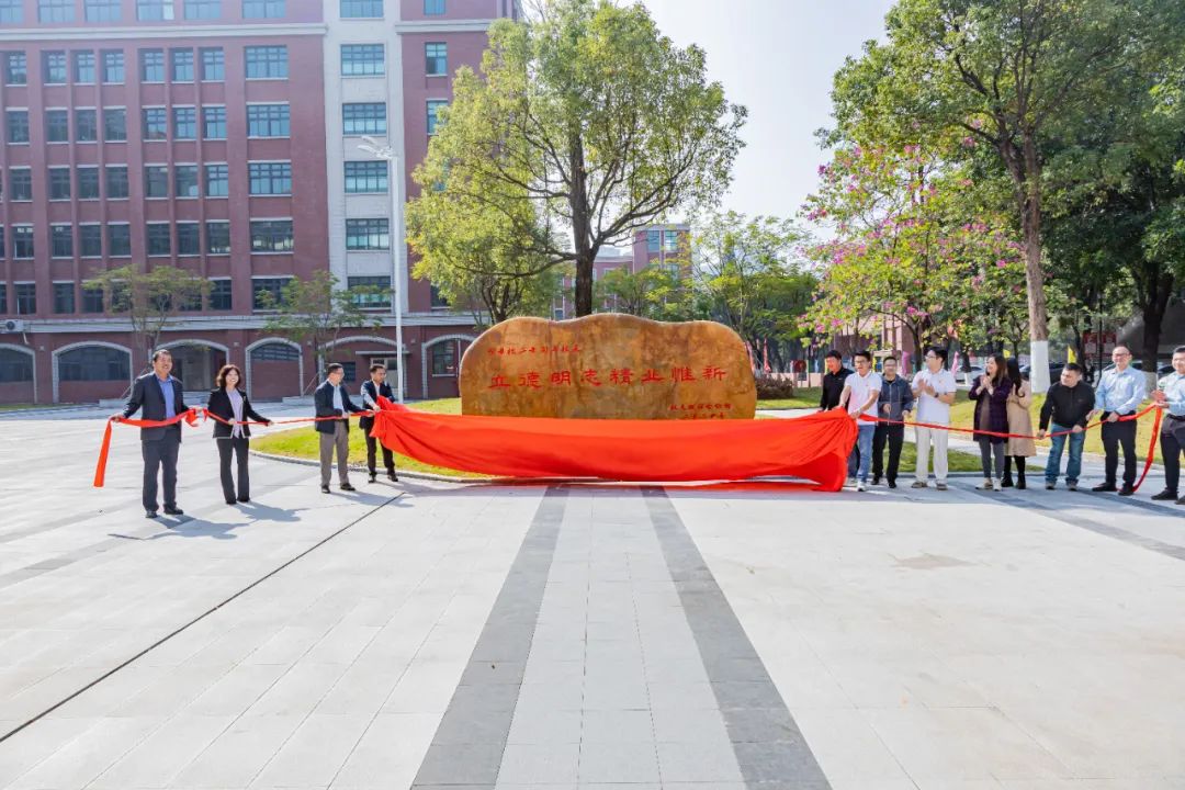伴随着在场师生倒数三个数,文化石正式揭幕,其正面镌刻着校训“立德 明志 精业 惟新”,背面镌刻的则是“感恩”二字,寓意着每一个“火大人”都要铭记和传承学校校训精神,同时也诉说着广大校友对母校栽培教导的深情感恩。