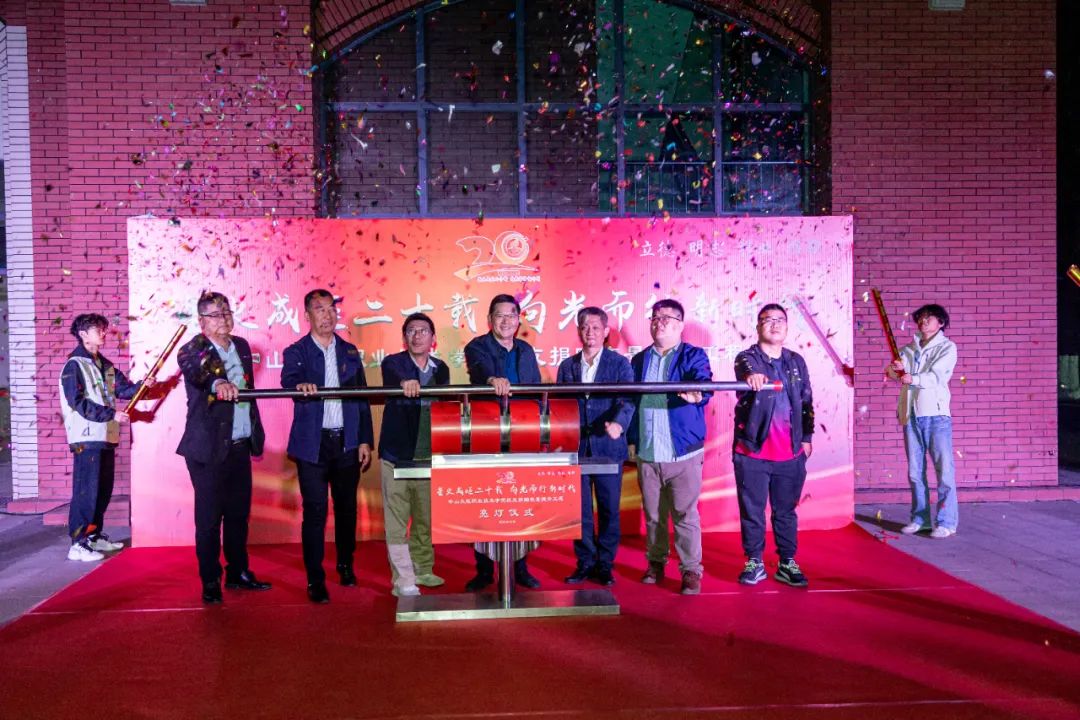 伴随着邹鑫书记宣布“中山火炬职业技术学院夜景提升工程正式亮灯”,各位领导嘉宾携手三位校友共同推杆启动亮灯。霎时,灯光逐渐亮起,整个广场大楼被璀璨的灯光照亮。这一刻,星火成炬,照亮了广大师生和校友的心田;这一刻,共襄盛举,凝聚了全校师生和校友的力量。这一刻,二十载华光璀璨,耀梦启航。
