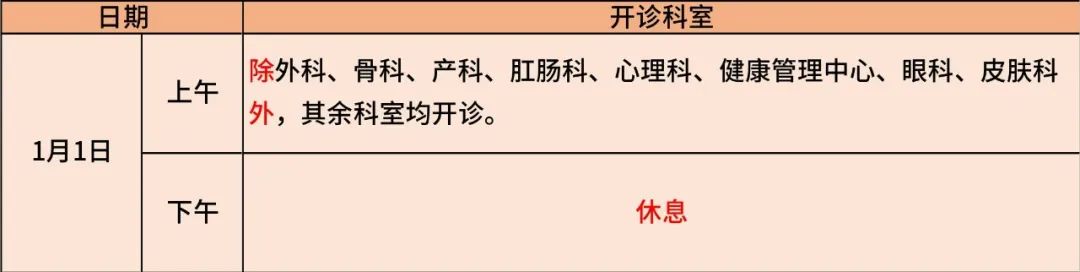 现将元旦假期内,我院门诊医生排班情况公告如下: