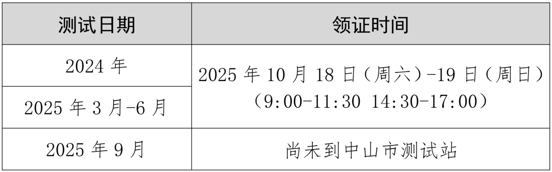 参加2024年-2025年6月普通话水平测试证书已到本测试站,考生可先登录国家普通话水平测试在线报名系统查询成绩(https://bm.cltt.org/#/score-inquiry),成绩达到60分以上(含60分)者可以领取证书,现将证书领取事项通知如下: