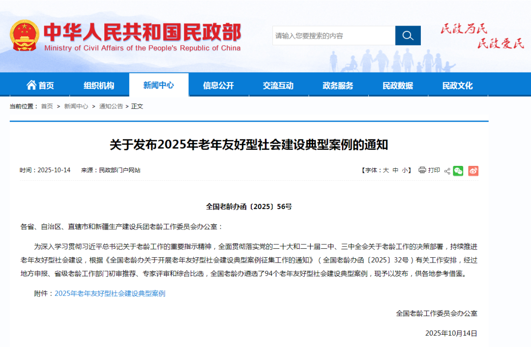 近日,全国老龄工作委员会办公室发布《关于发布2025年老年友好型社会建设典型案例的通知》,共遴选94个典型案例,广东省5个案例入选。中山市司法局申报的案例《筑牢法律防护网 全链条守护“夕阳红”》成功入选“2025年老年友好型社会建设典型案例”,是中山市唯一一个入选的案例。