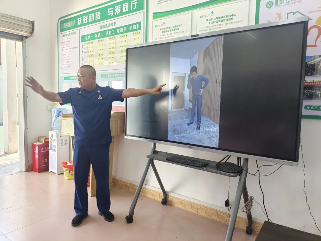 颐老院内,消防员组织大家开展灭火逃生演练,老人们在消防员的引导下安全撤离。演练结束后,消防员清扫院落,传递暖心关怀。以此同时,消防宣传员还给长者饭堂的工作人员开展消防安全培训,全面提升他们的消防安全意识与应急处置能力。