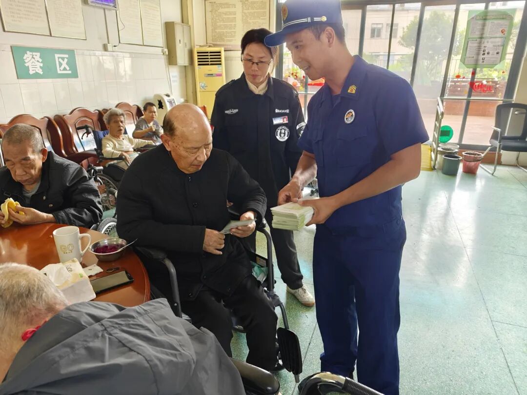 消防宣传员对敬老院消防设备进行了全面测试,确保其完好有效,并指导物业管理人员做好日常维护工作。同时,针对老年群体安全意识薄弱的特点,消防宣传员采用通俗易懂的语言,结合日常生活场景,向长者们讲解了安全用火用电、火场逃生自救等基本常识,确保长者们生活环境的安全。