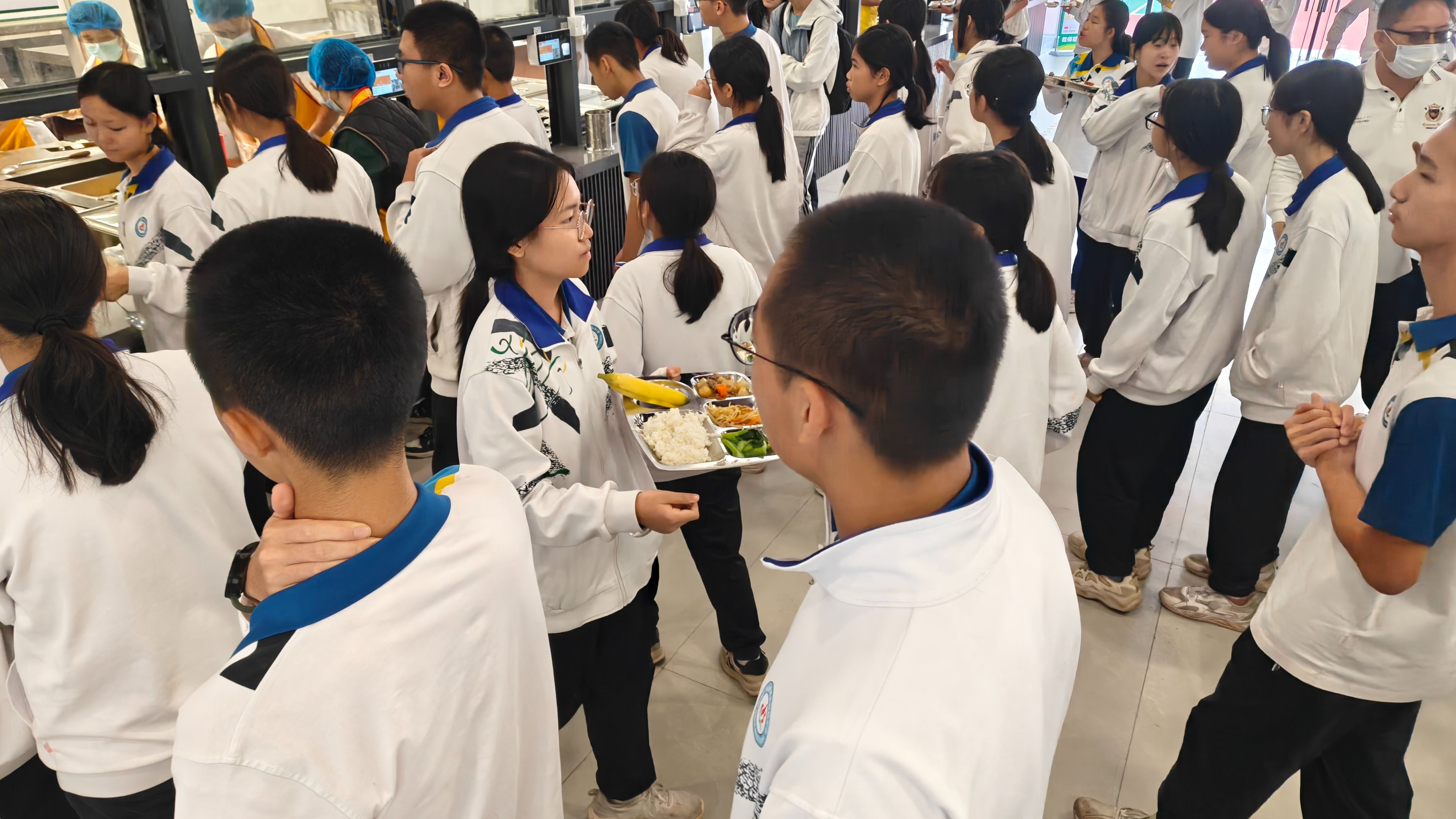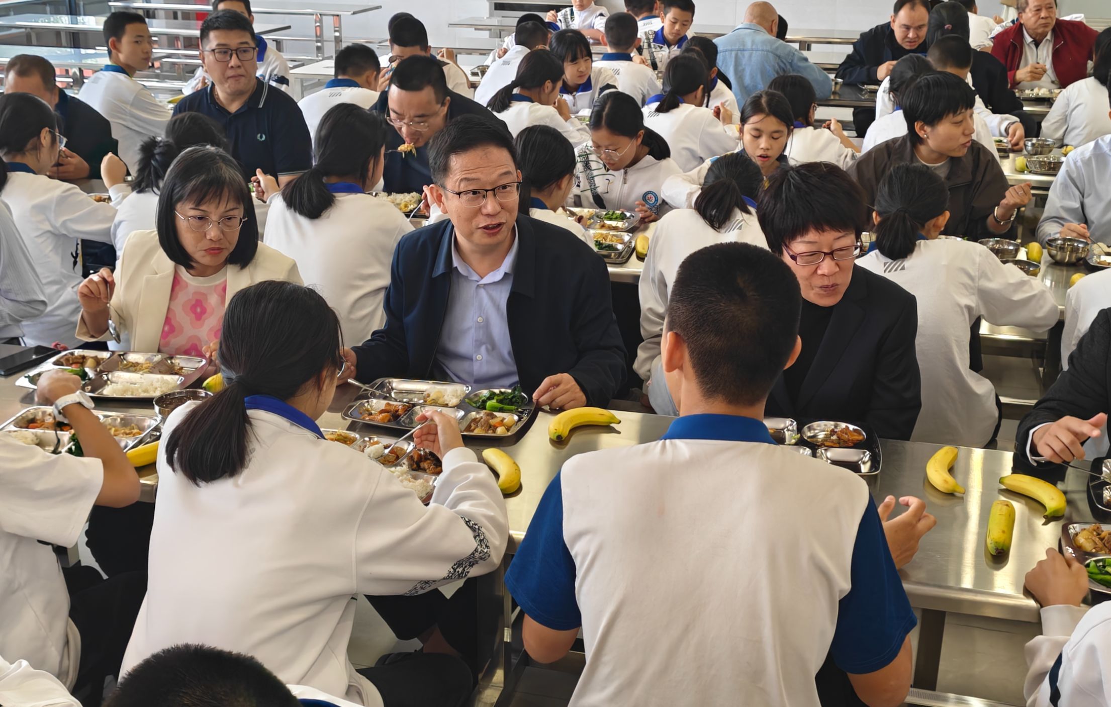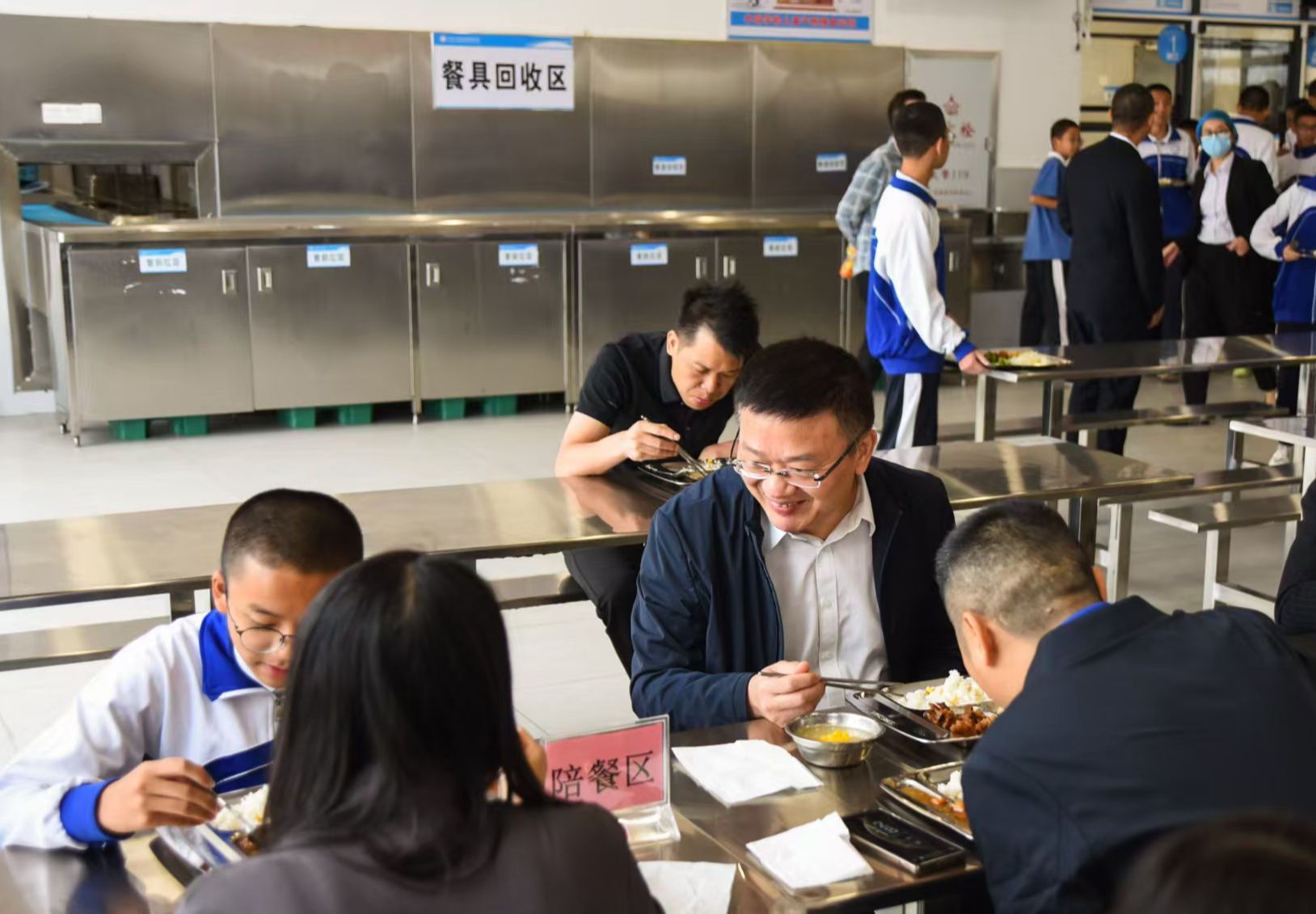 就餐时,薛治国排队打餐后果断与学生们同坐一桌,边吃边亲切询问:“饭菜味道怎么样?环境还习惯吗?有什么需要改进的地方?”面对这位“特殊同桌”,同学们纷纷敞开心扉,直言“饭菜比以前好吃多了”“环境特别舒适”。
