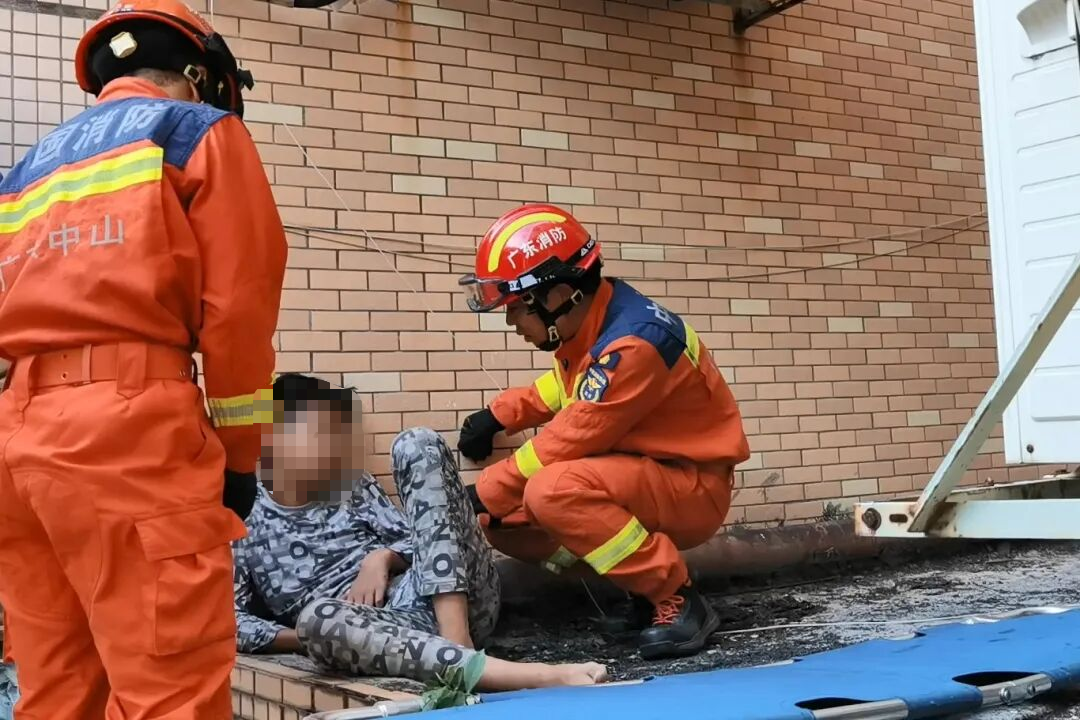 消防员到场后,与医护人员一起通过2楼住户的阳台进入公共平台。只见一名十来岁的男孩坐在地面上,身体靠着墙壁,意识清醒,但因身体剧痛和惊吓过度,无法说话和移动身体。经现场医护人员初步检查,男孩疑似骨折,并无生命危险。