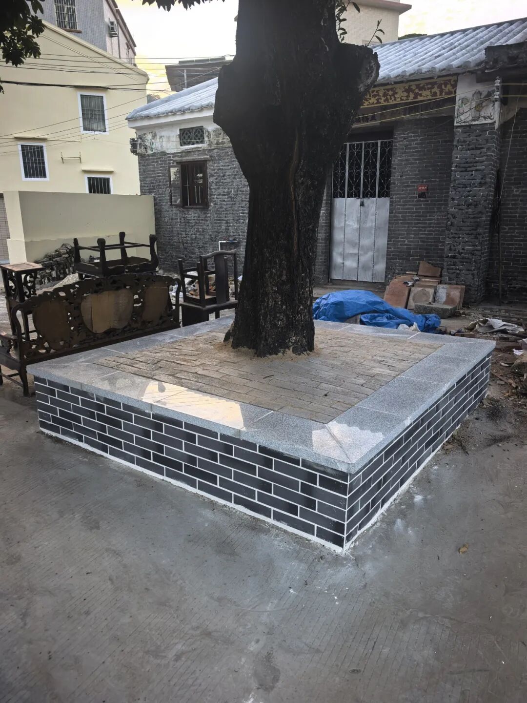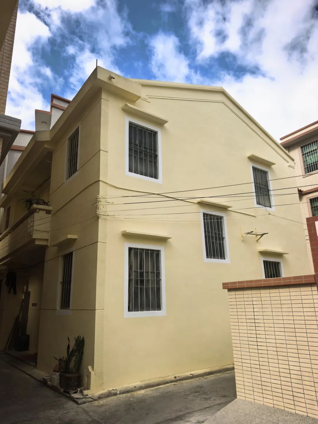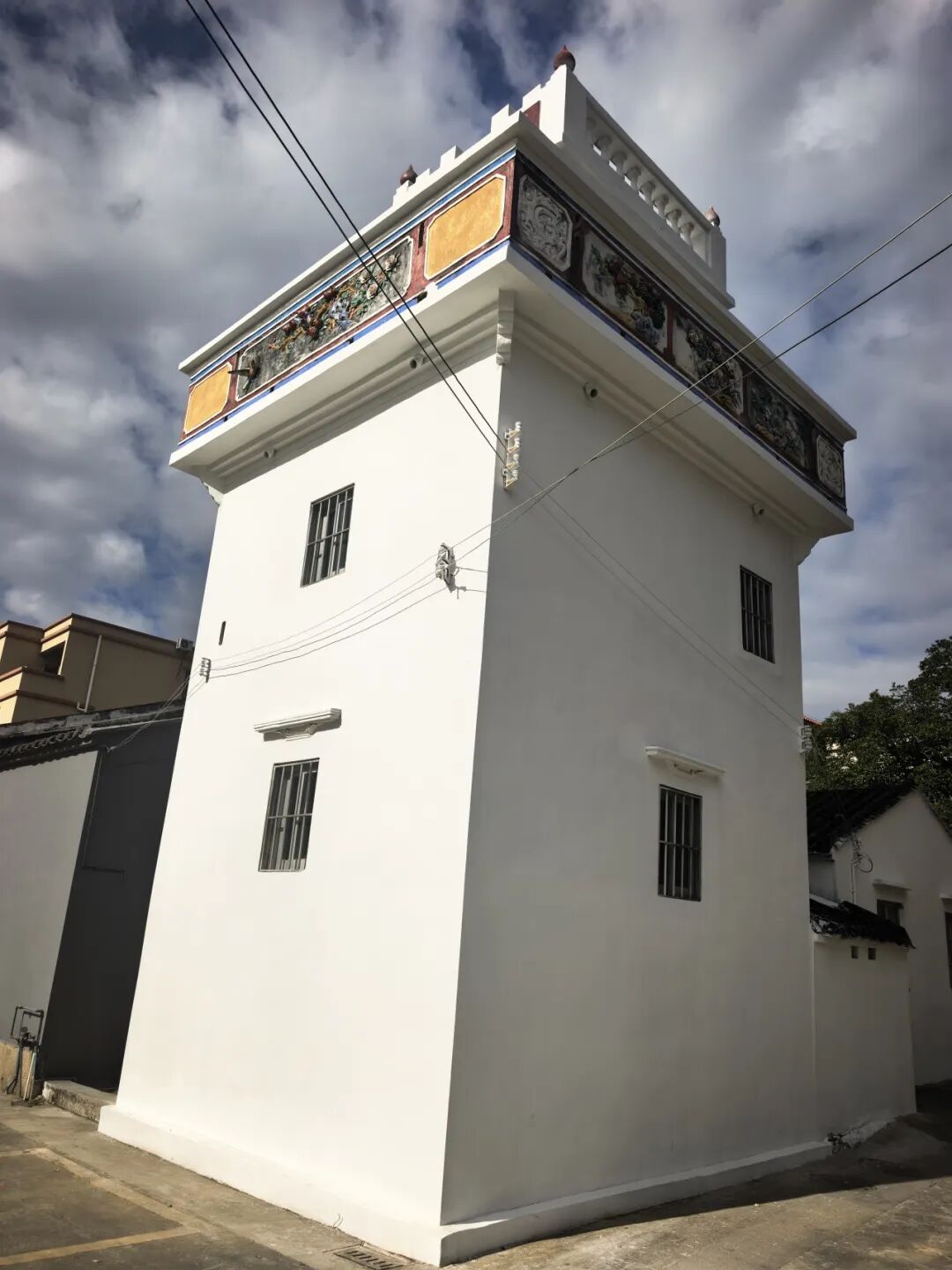 村口地标碉楼,因年久失修,立面破损、塔顶生杂。此次改造通过精细清洗、彻底除草,并重新进行墙面翻新,使其重现往日风采。对西邨古庙及沿线特色青砖立面,团队则坚持“修旧如旧”,通过修补斑驳、清理杂物,让这些承载集体记忆的历史印记重获新生。